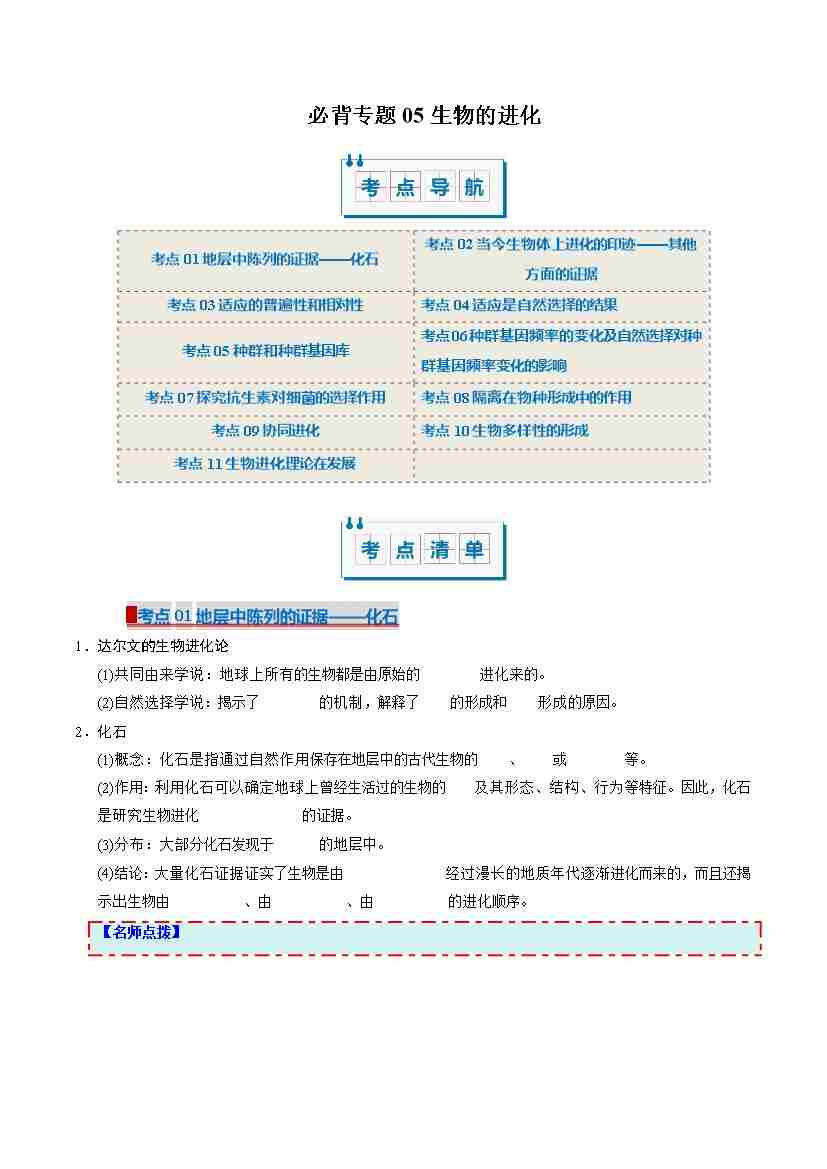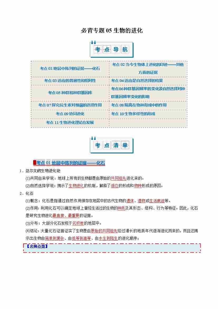 (考点清单)专题05 生物的进化(11大考点)(学生版)