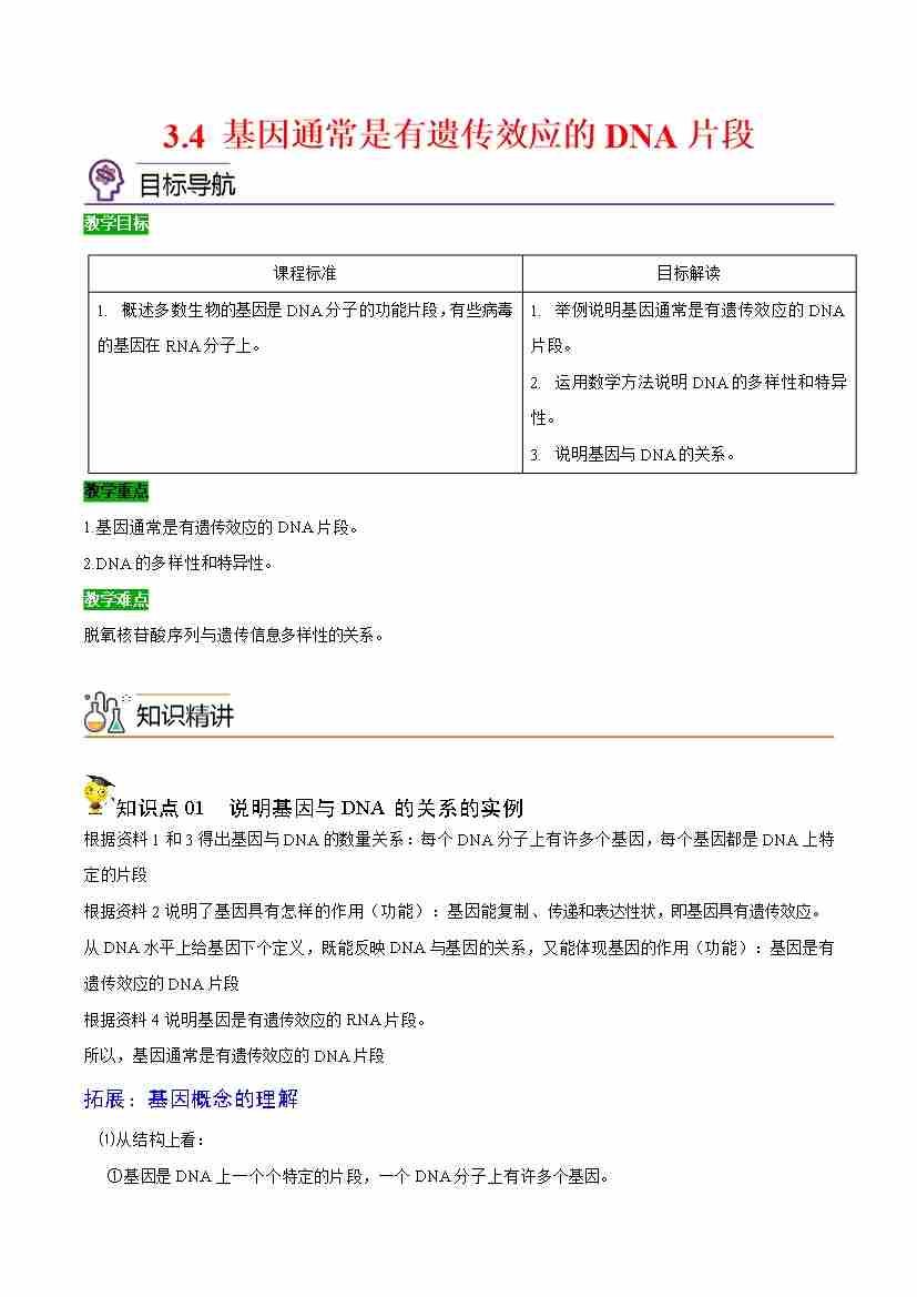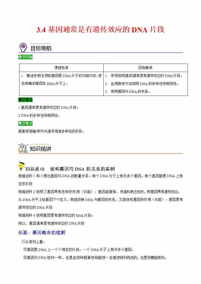 3.4 基因通常是有遗传效应的DNA片段(学生版)(人教版必修2)