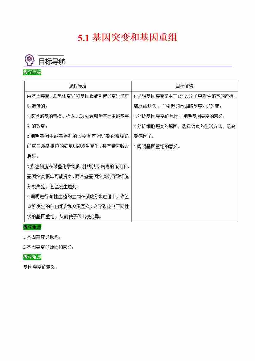 5.1 基因突变和基因重组(教师版)(人教版必修2)