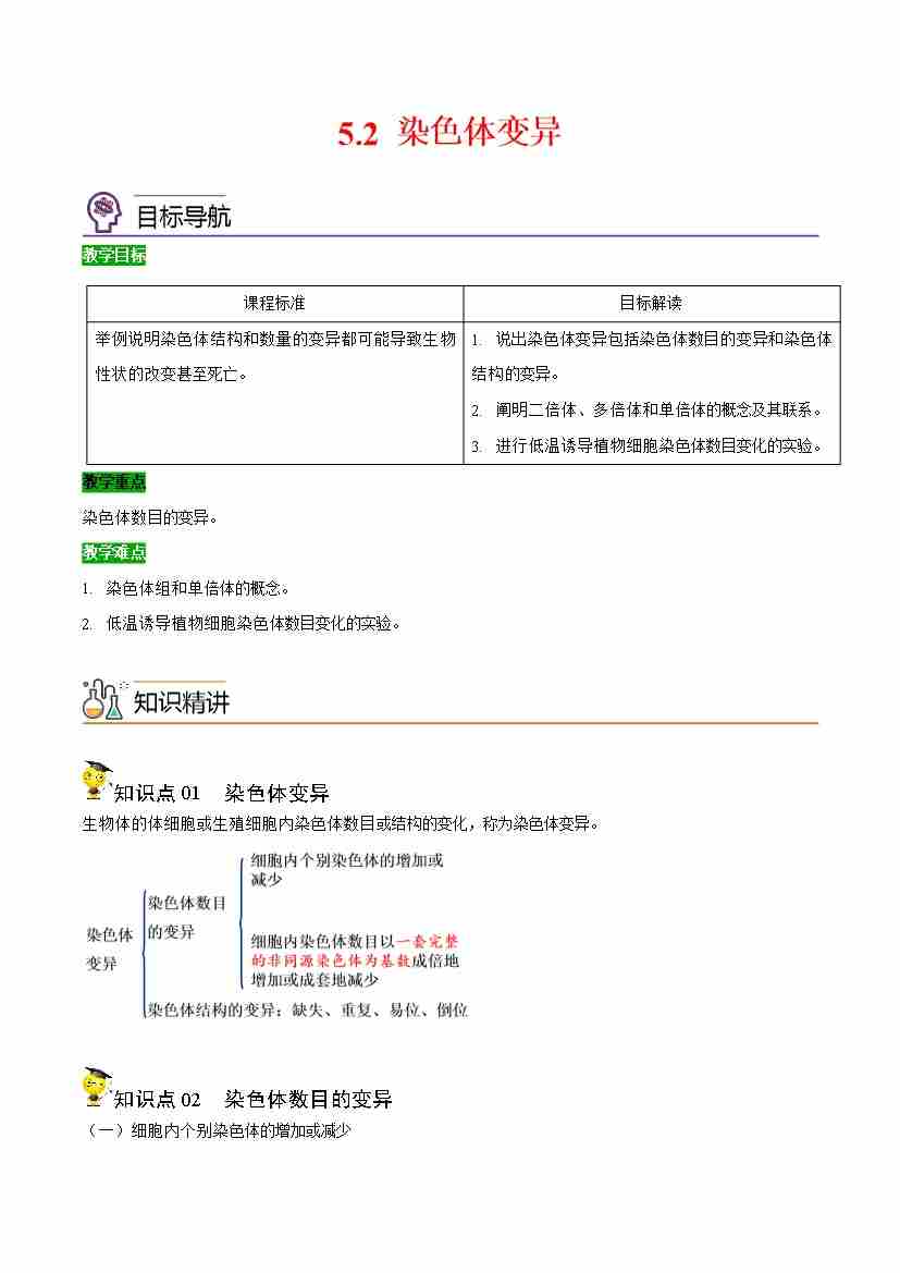 5.2 染色体变异(学生版)(人教版必修2)