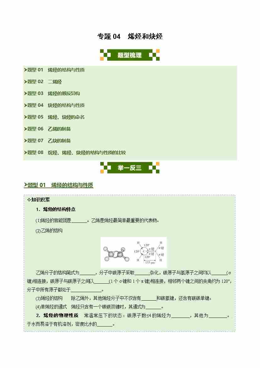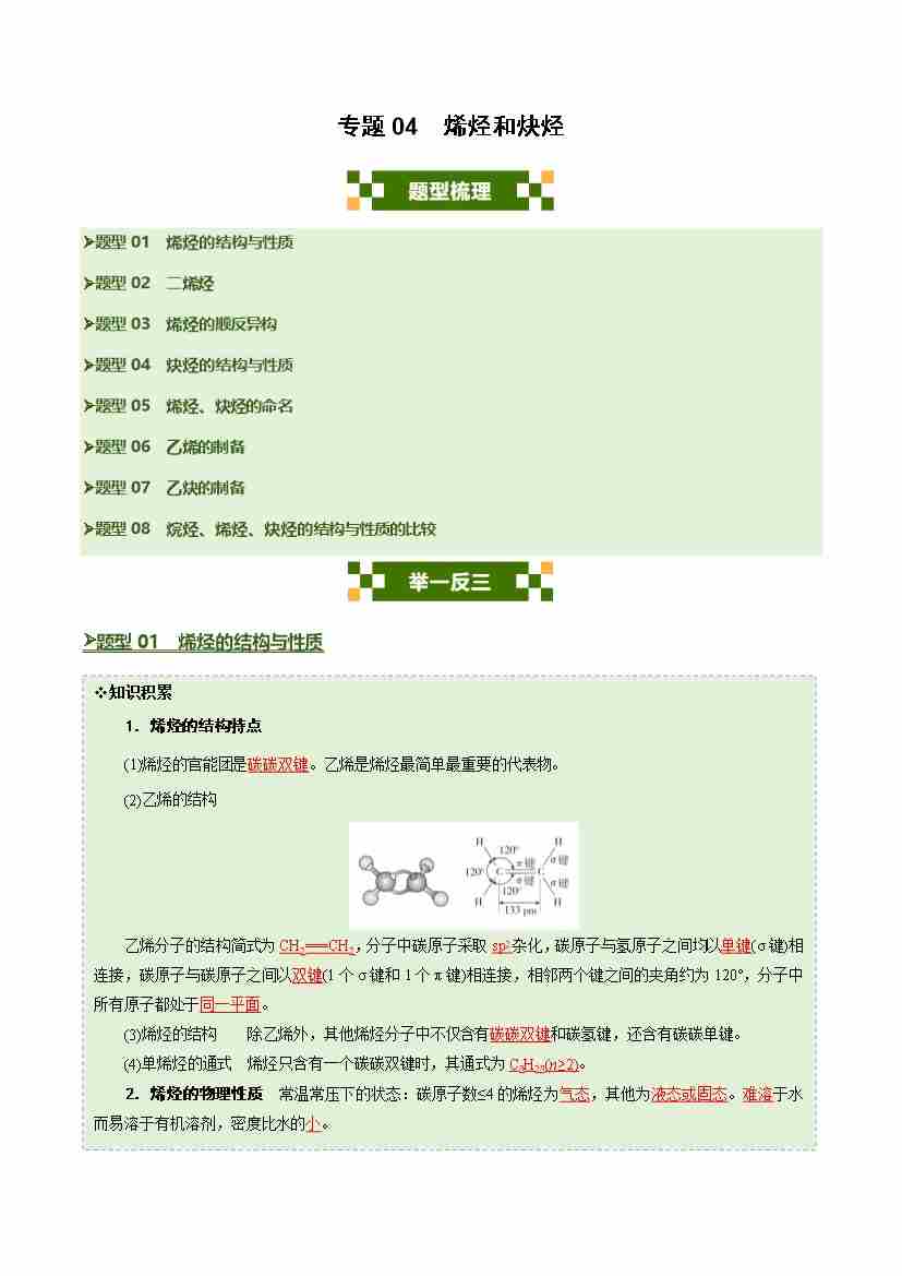 专题04 烯烃和炔烃(八大题型)(学生版)