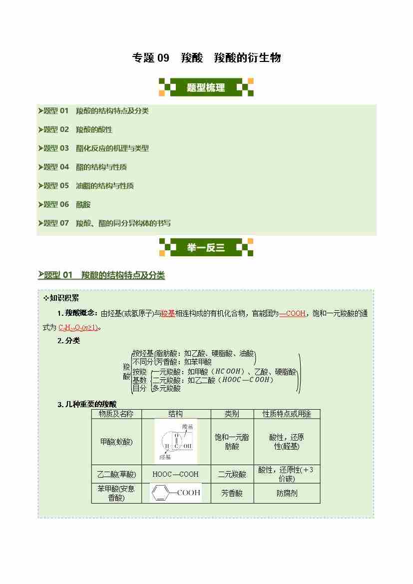 专题09 羧酸 羧酸的衍生物(七大题型)(学生版)