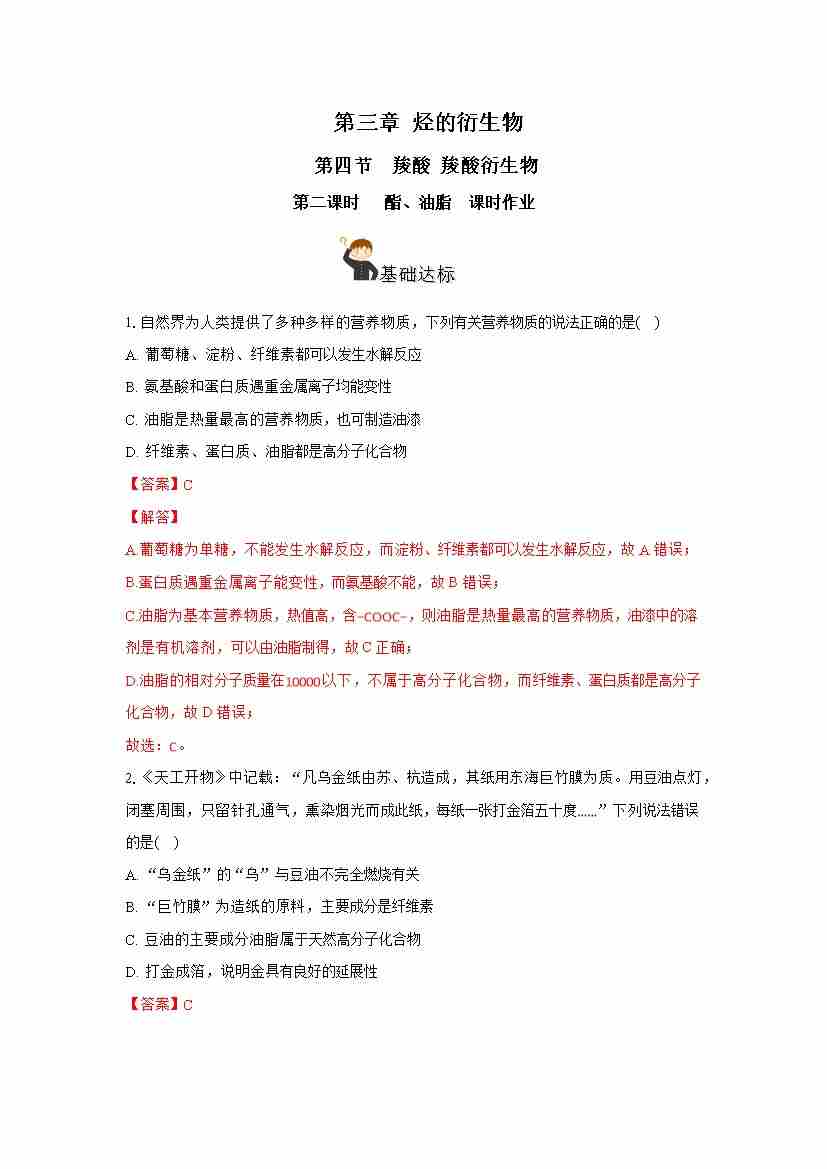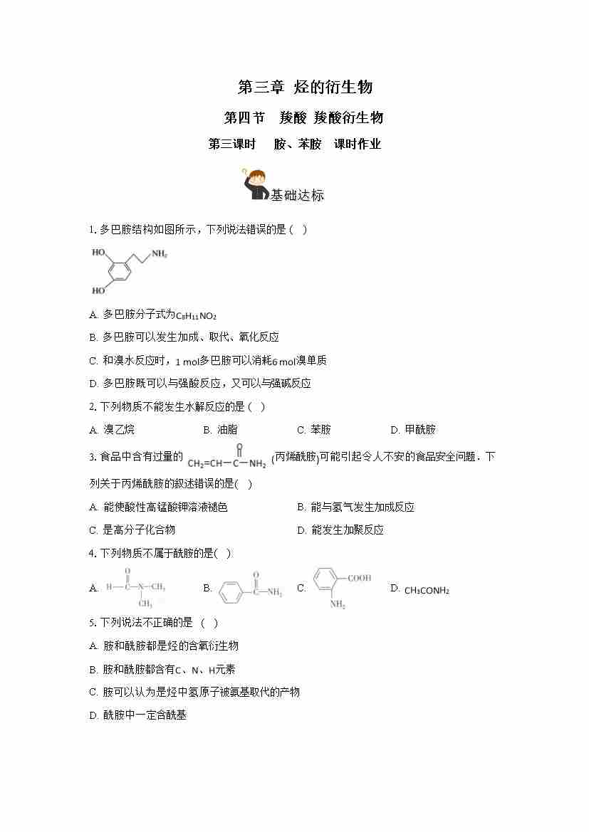 3.4.3胺、苯胺(分层作业)(原卷版)