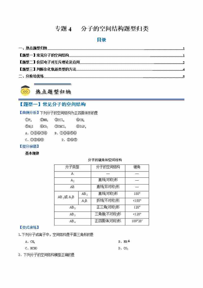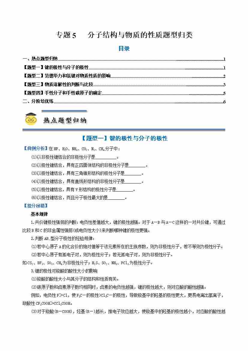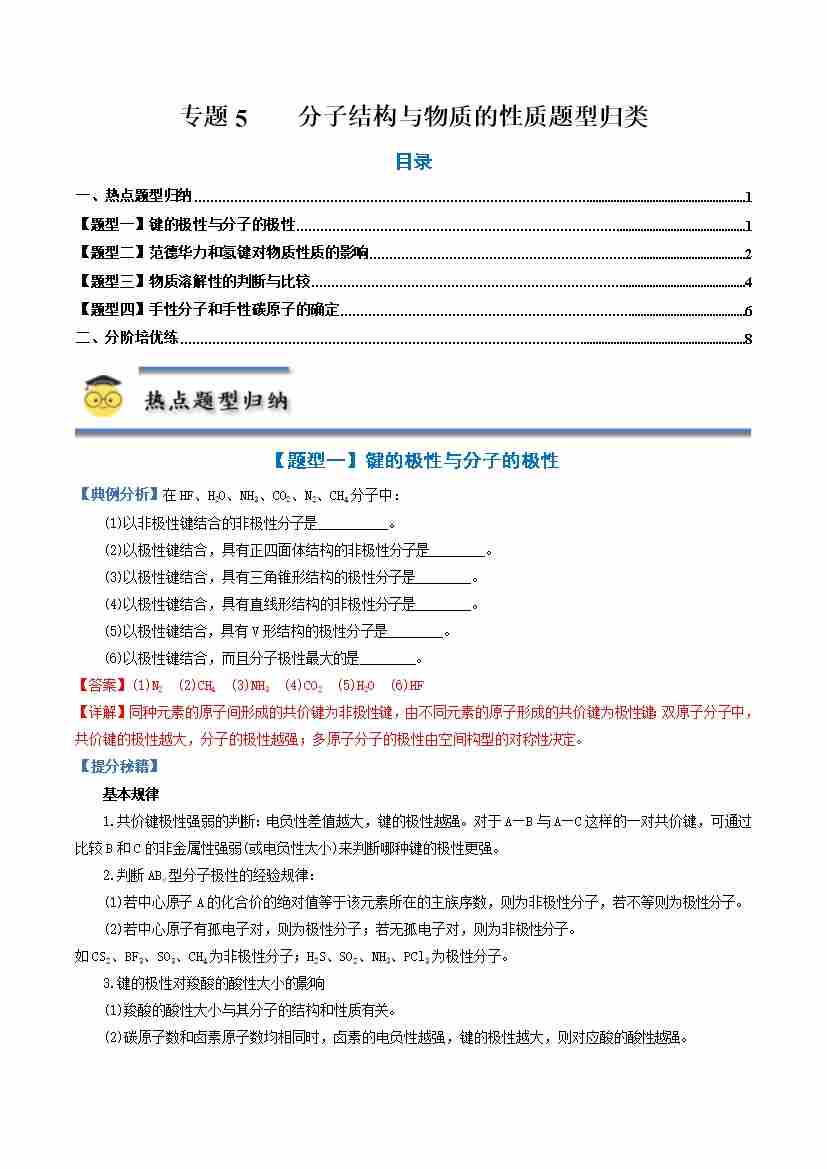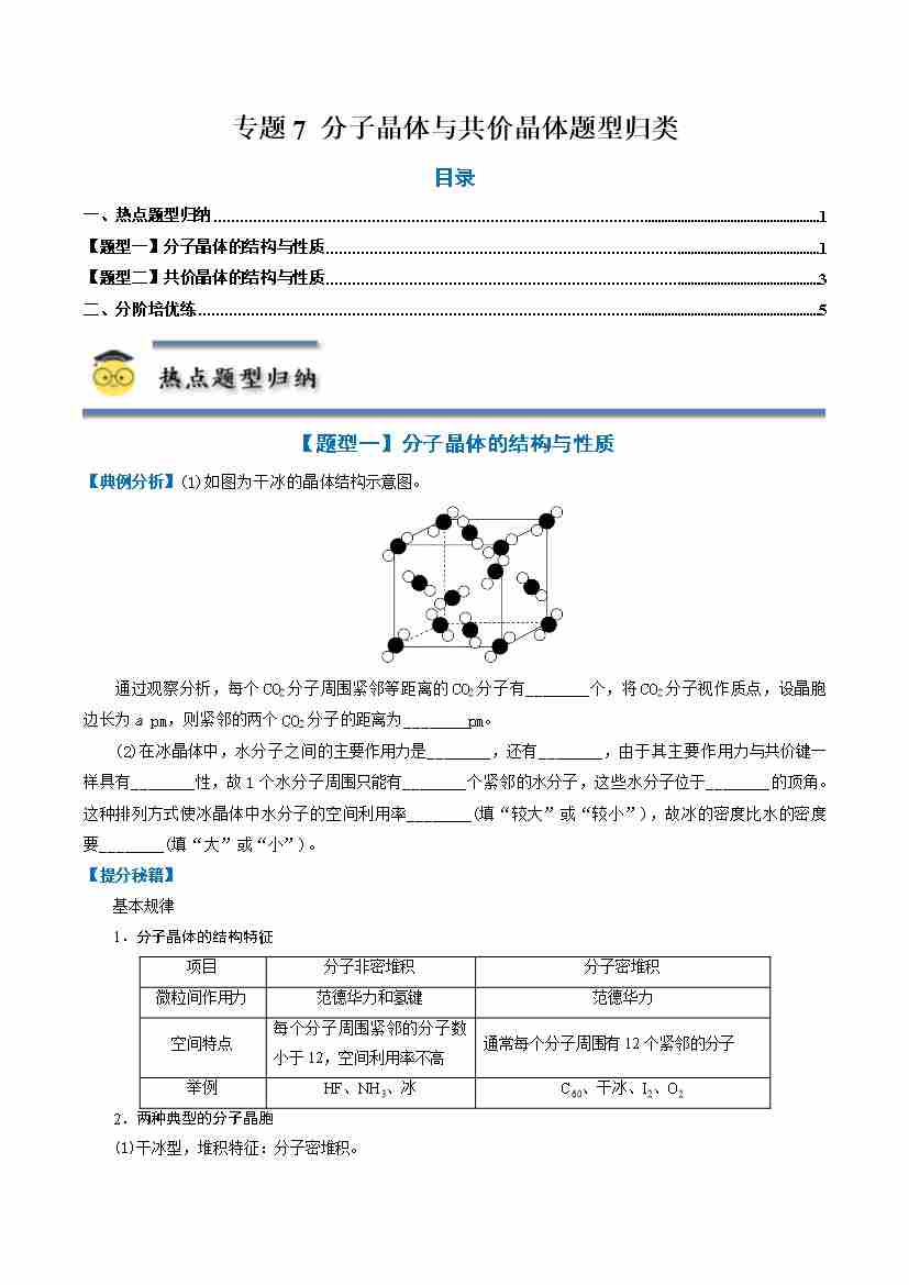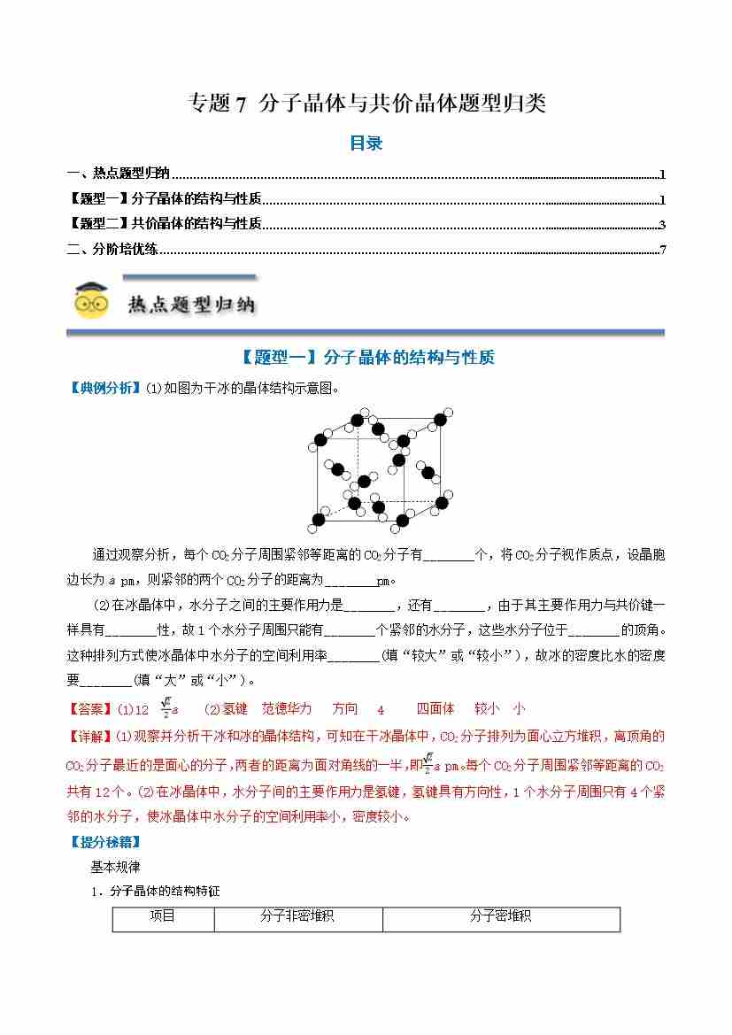专题7 分子晶体与共价晶体(人教版选择性必修2)(学生版)