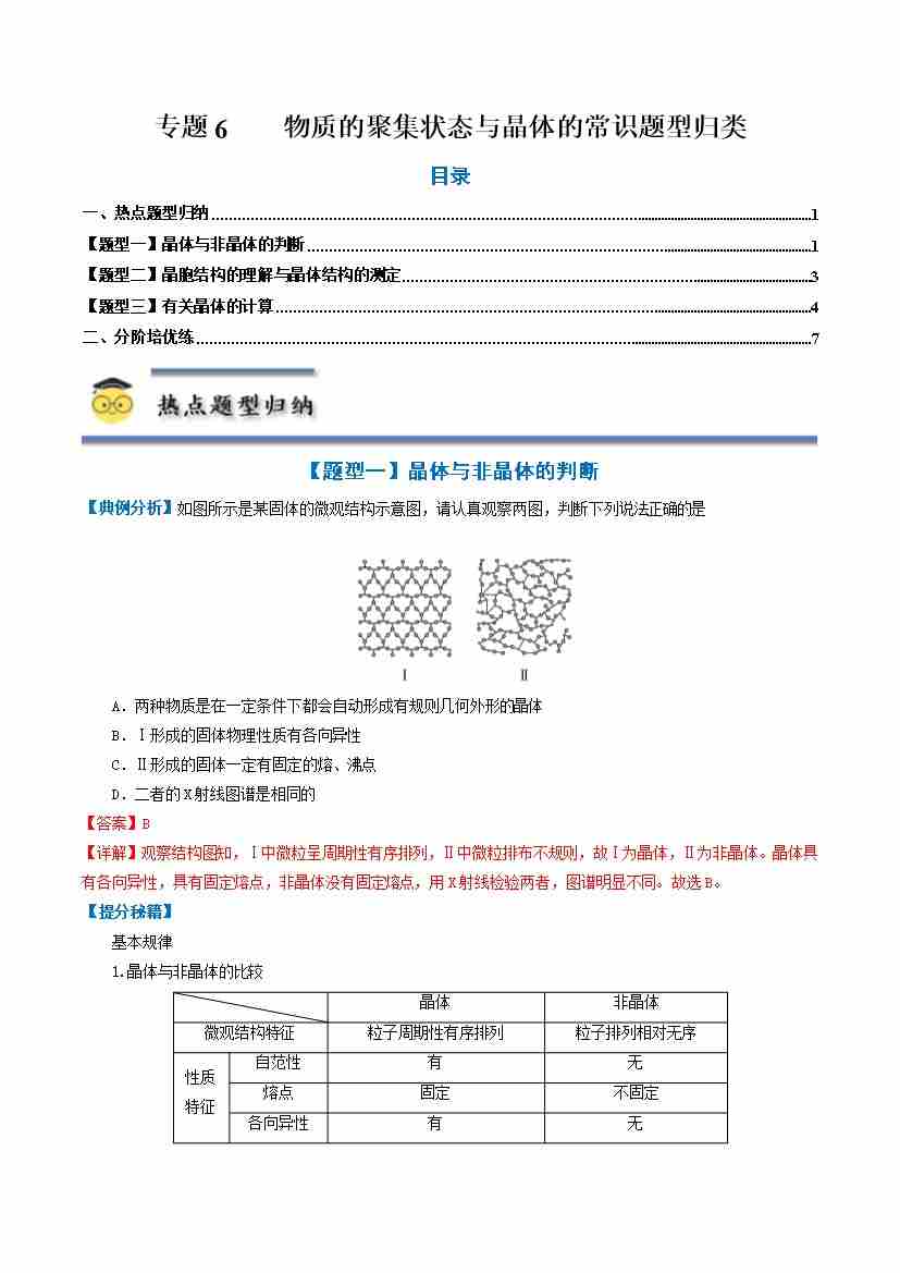 专题6 物质的聚集状态与晶体的常识(教师版)