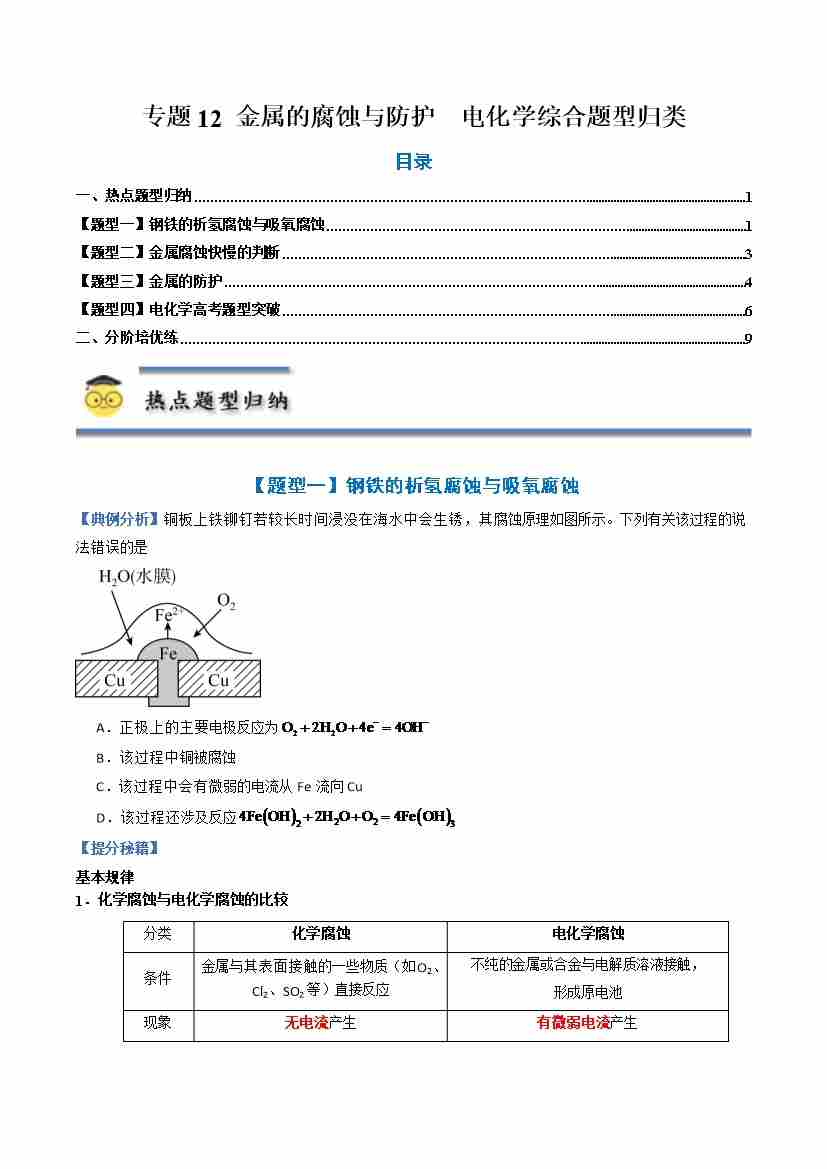 专题12 金属的腐蚀与防护-(人教版2019选择性必修1)(学生版)