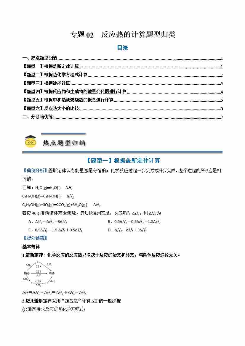 专题02反应热的计算-(人教版2019选择性必修1)(学生版)