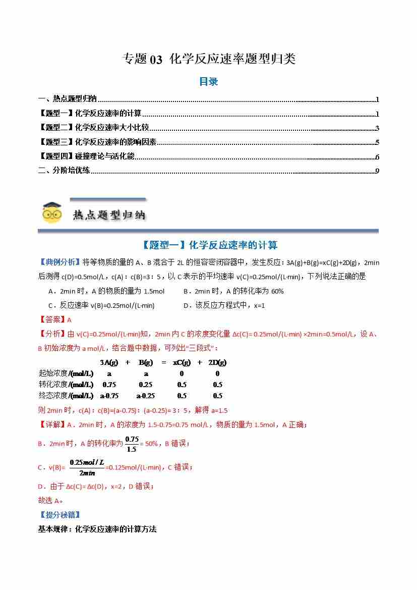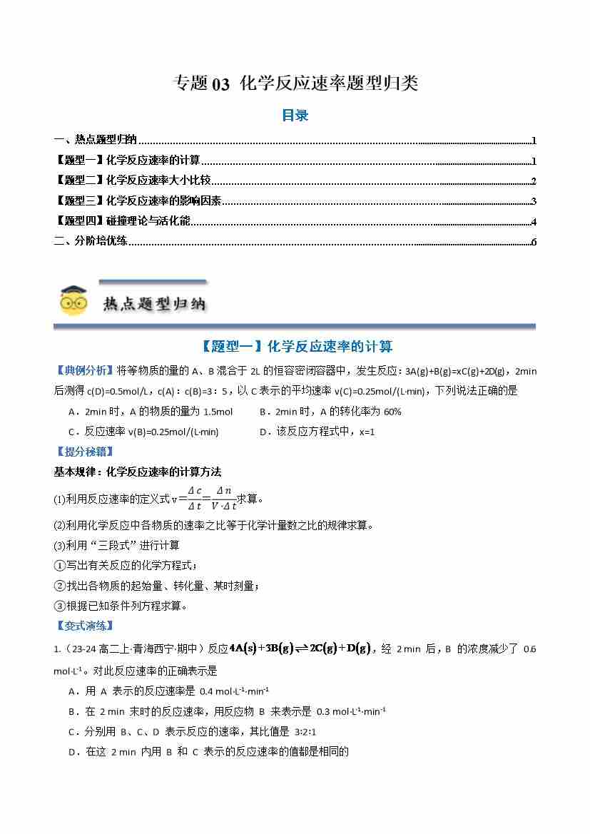 专题03化学反应速率-(人教版2019选择性必修1)(学生版)