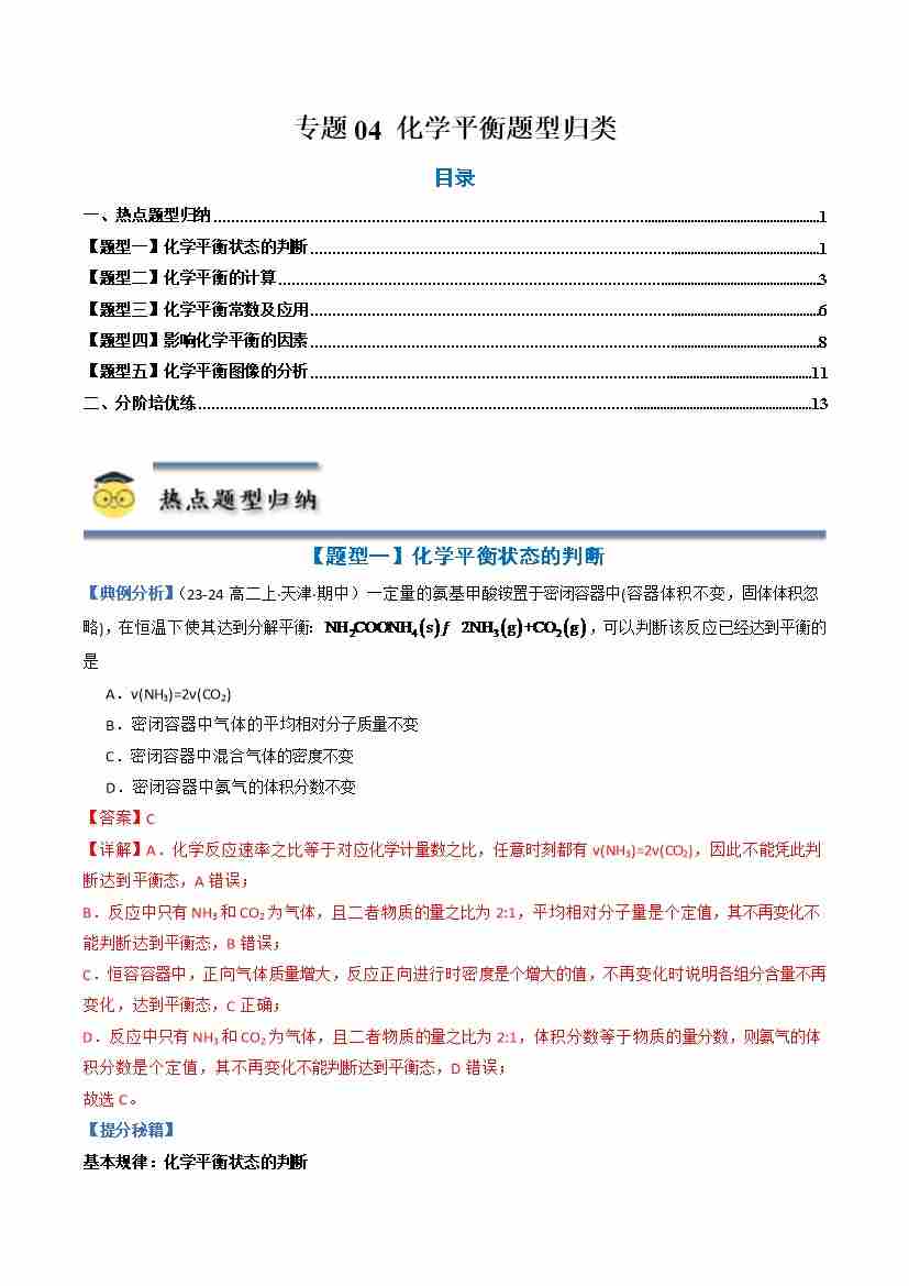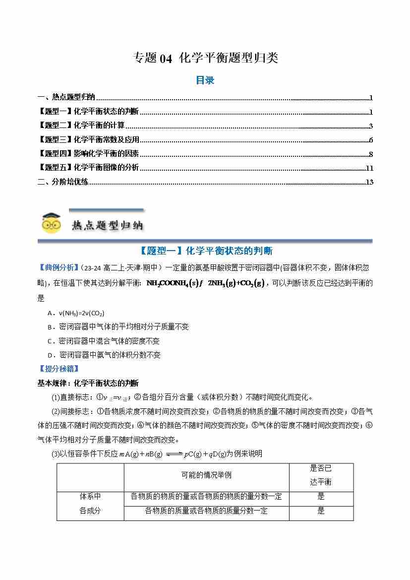 专题04化学平衡-(人教版2019选择性必修1)(学生版)