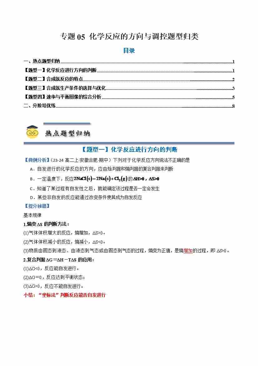 专题05 化学反应的方向与调控--(人教版2019选择性必修1)(学生版)