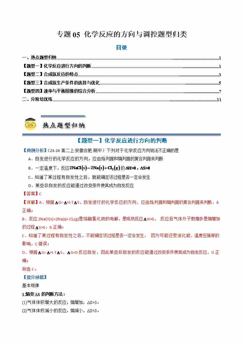 专题05 化学反应的方向与调控--(人教版2019选择性必修1)(教师版)