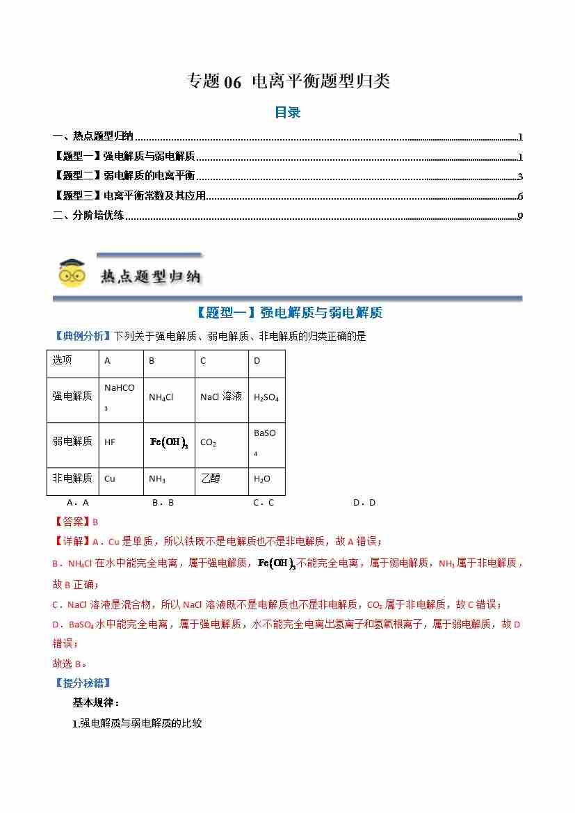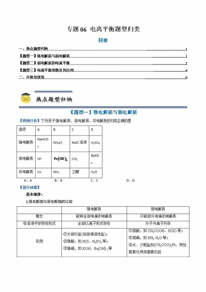 专题06 电离平衡-(人教版2019选择性必修1)(学生版)