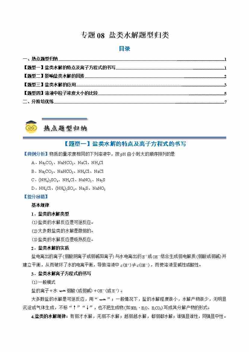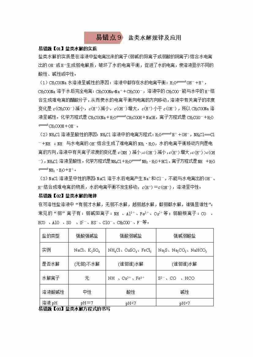 专题08 盐类水解-(人教版2019选择性必修1)(学生版)