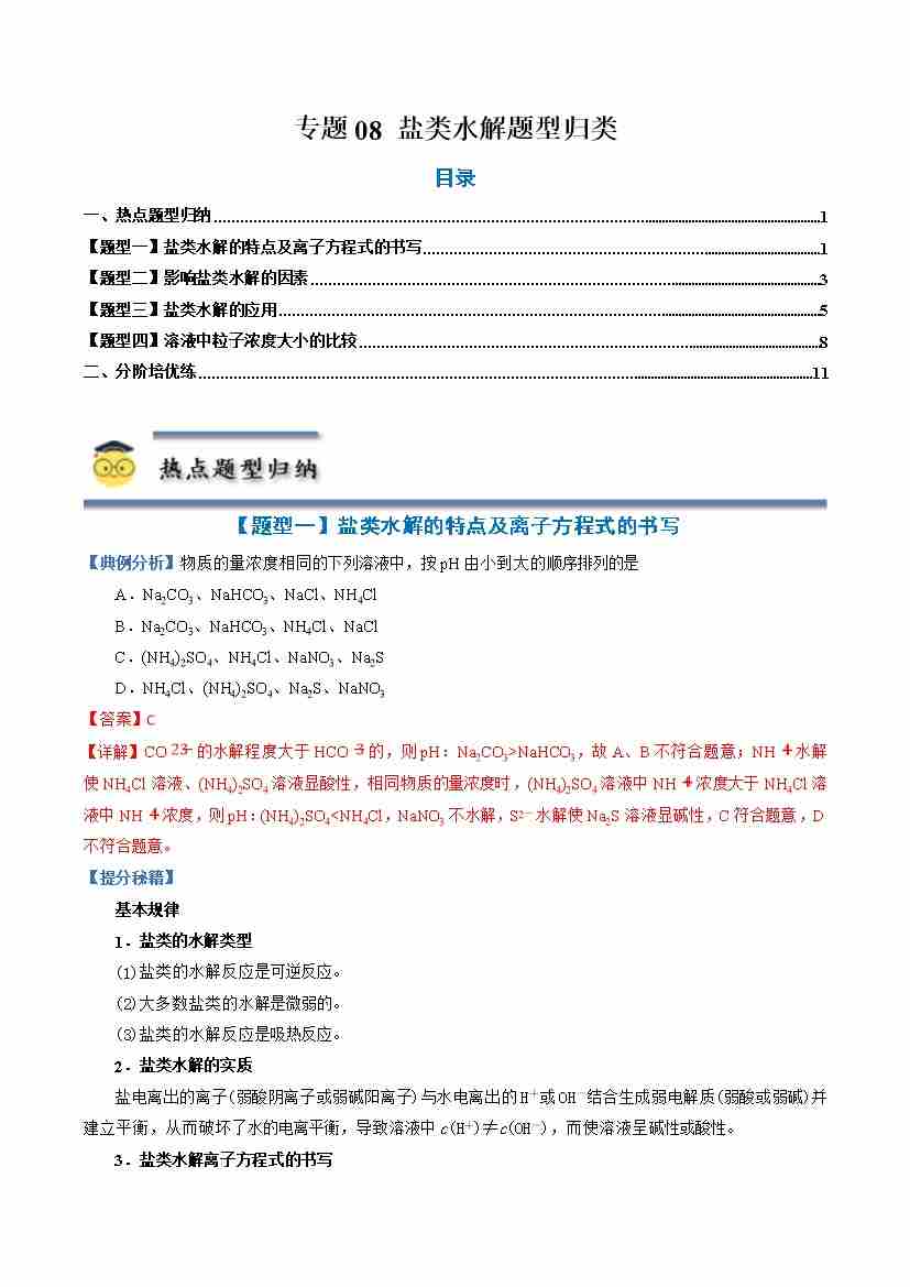 专题08 盐类水解-(人教版2019选择性必修1)(教师版)