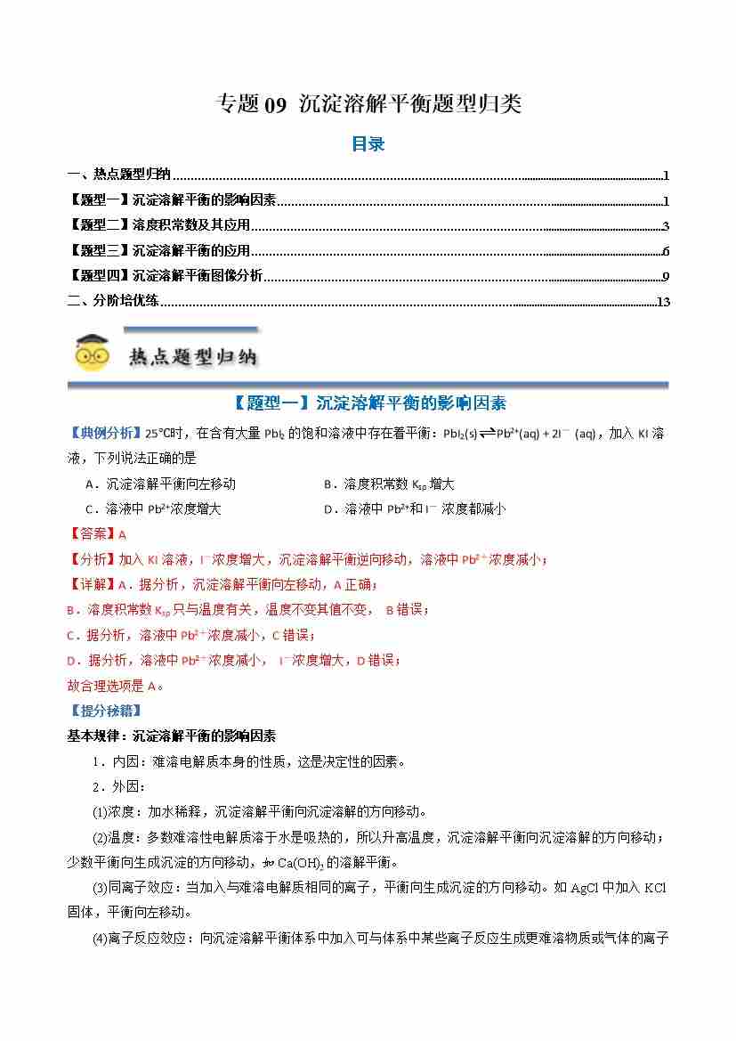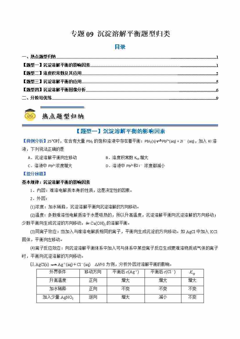 专题09 沉淀溶解平衡--(人教版2019选择性必修1)(学生版)