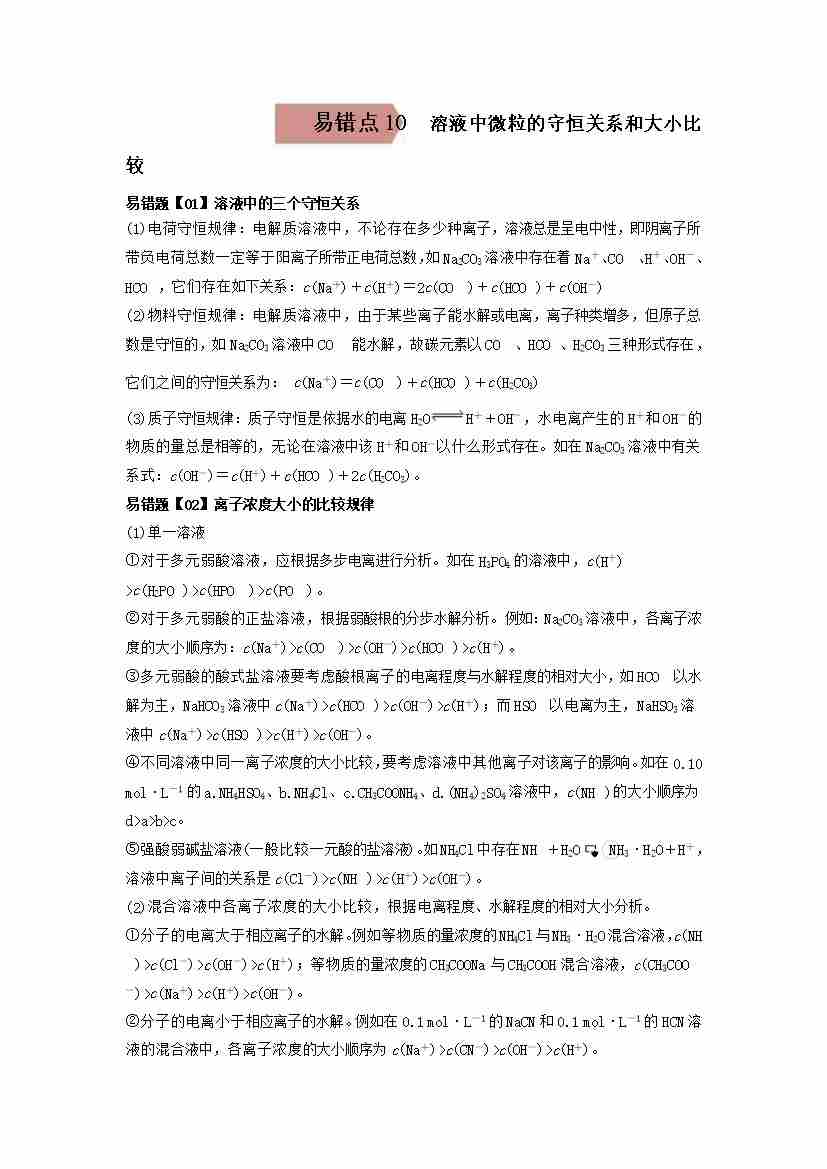 易错点10 溶液中微粒的守恒关系和大小比较(教师版)