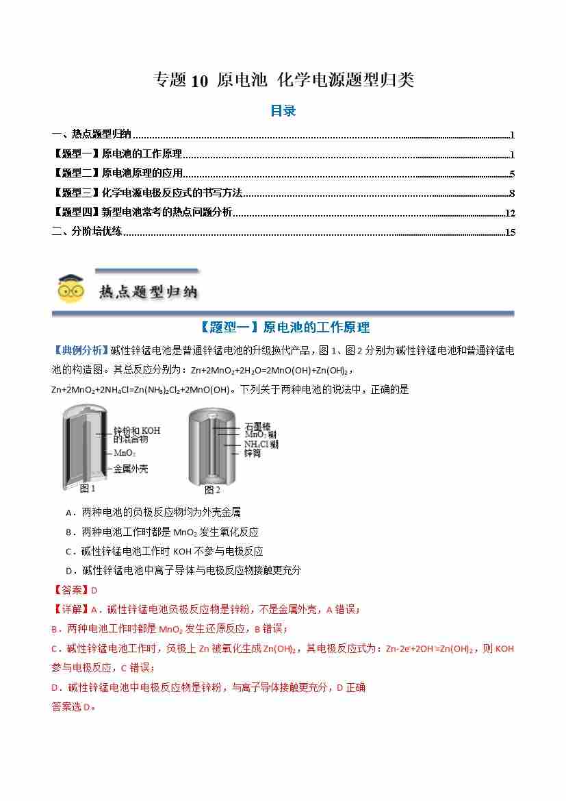 专题10 原电池 化学电源--(人教版2019选择性必修1)(教师版)
