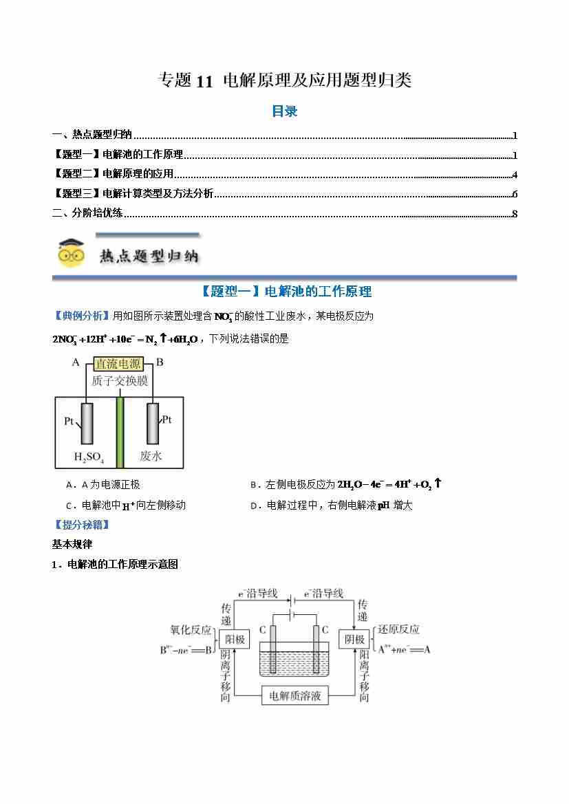 专题11 电解原理及应用 --(人教版2019选择性必修1)(学生版)