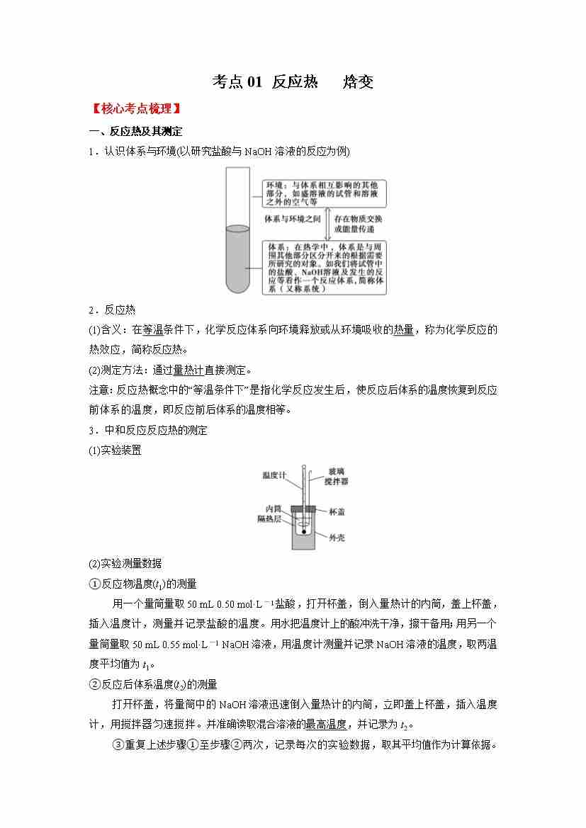 考点01 反应热 焓变 -(学生版)