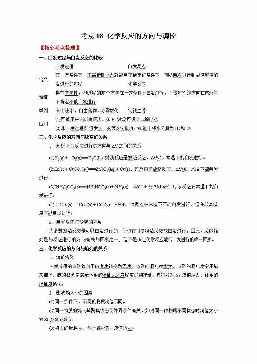 考点08 化学反应的方向与调控-(学生版)