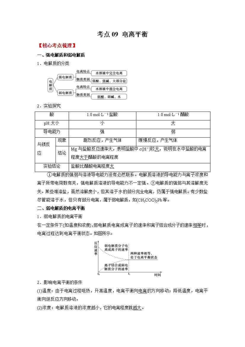考点09 电离平衡-(学生版)