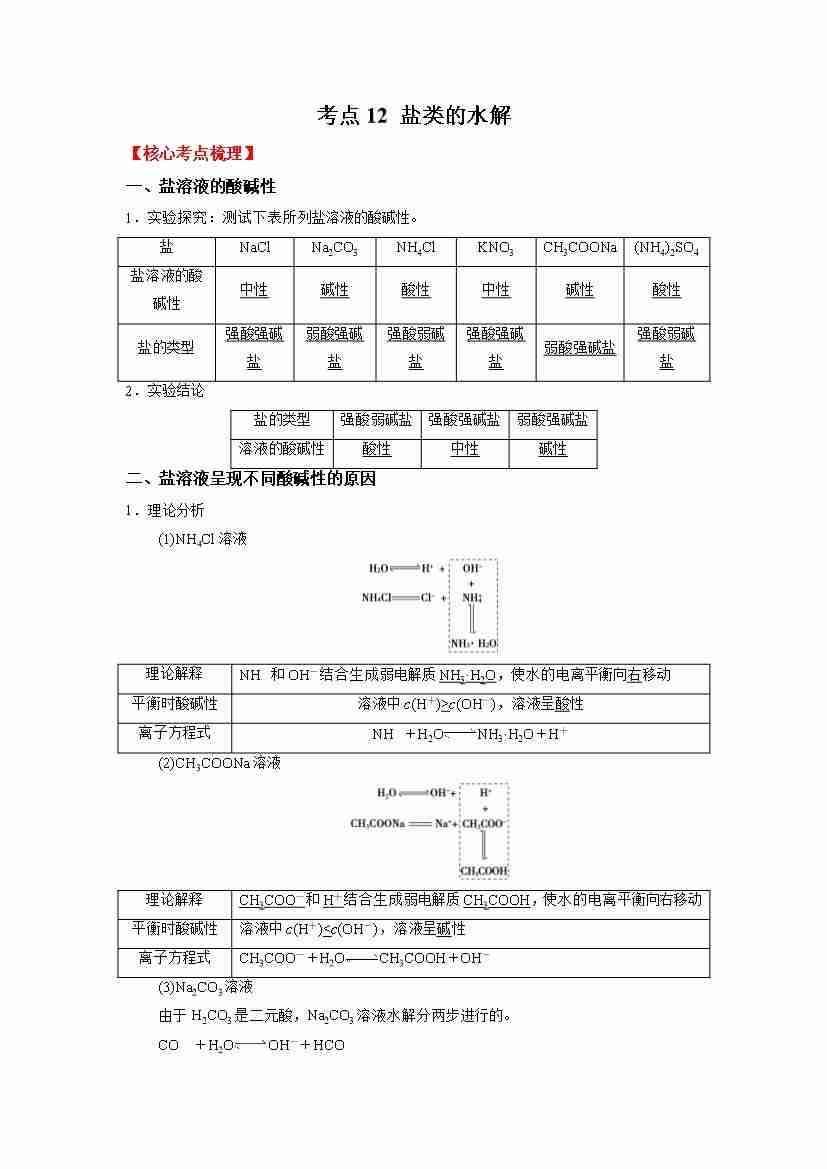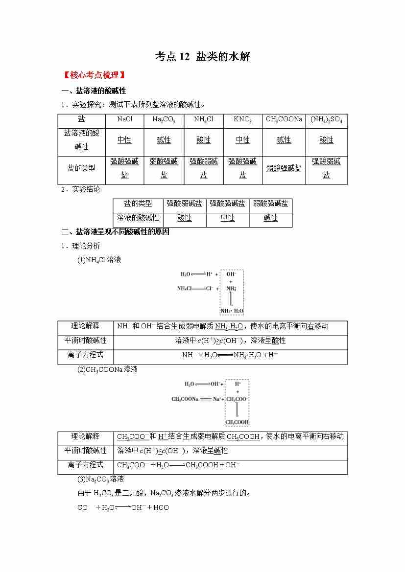 考点12 盐类的水解-(学生版)