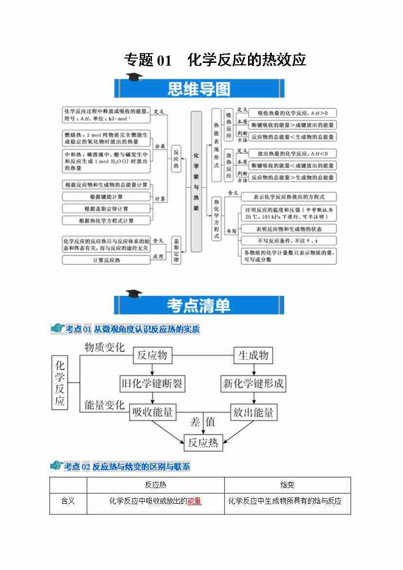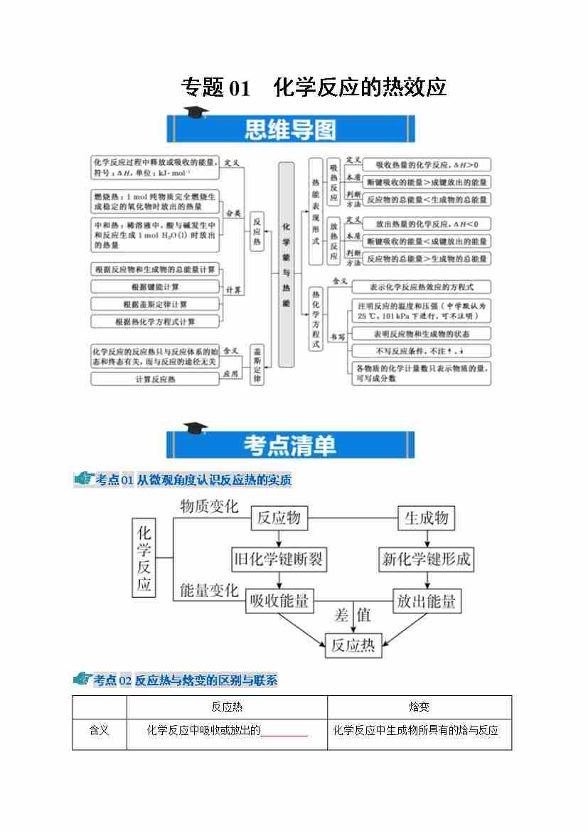 专题01 化学反应的热效应(期中知识清单)(原卷版)