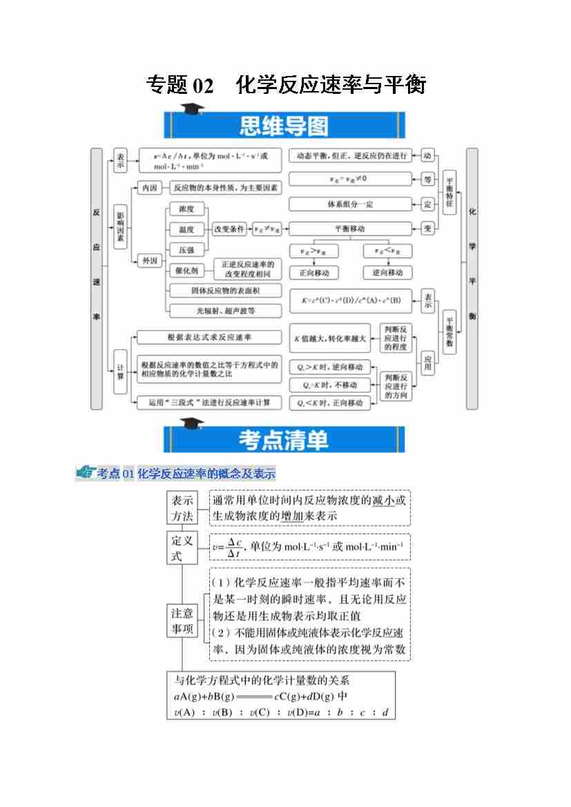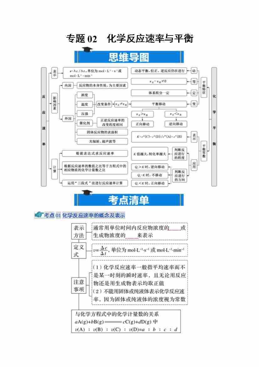 专题02 化学反应速率与平衡(期中知识清单)(原卷版)