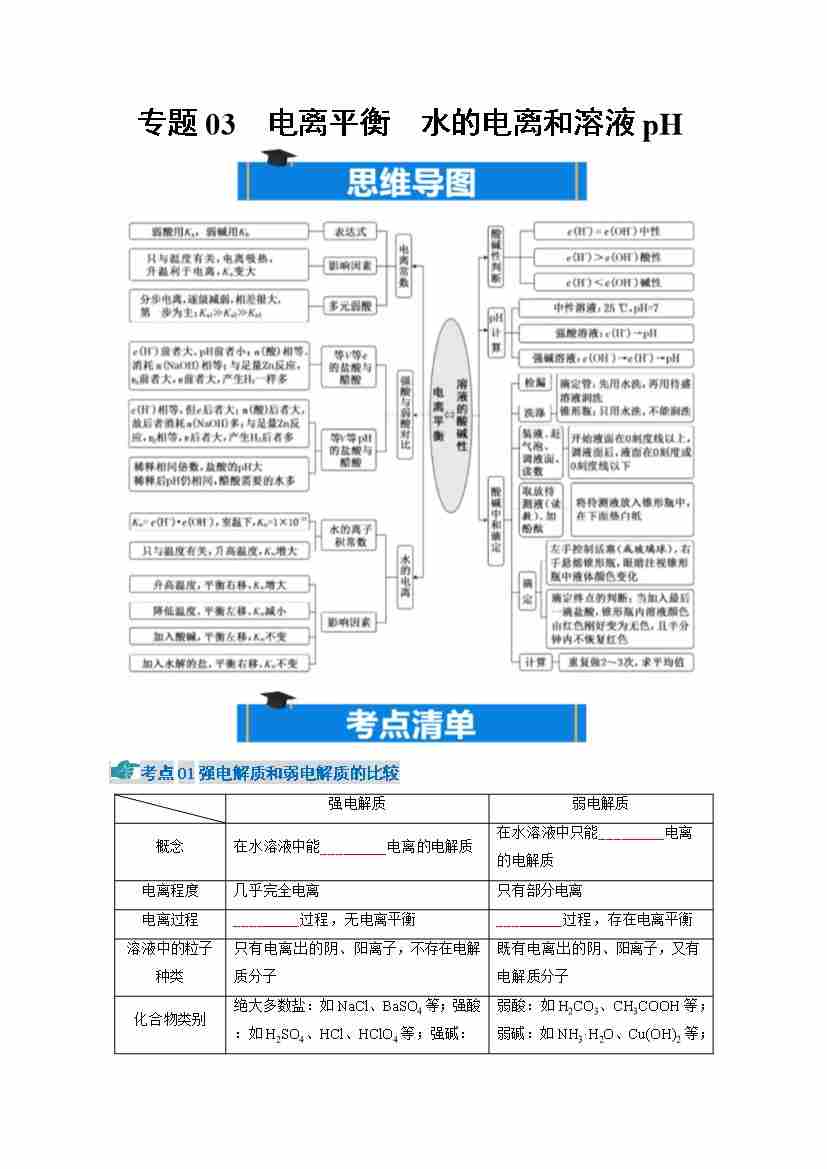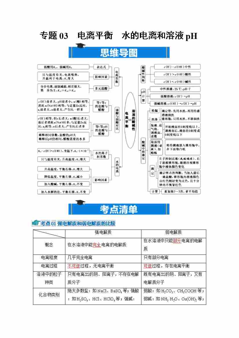 专题03 电离平衡 水的电离和溶液pH(期中知识清单)(原卷版)