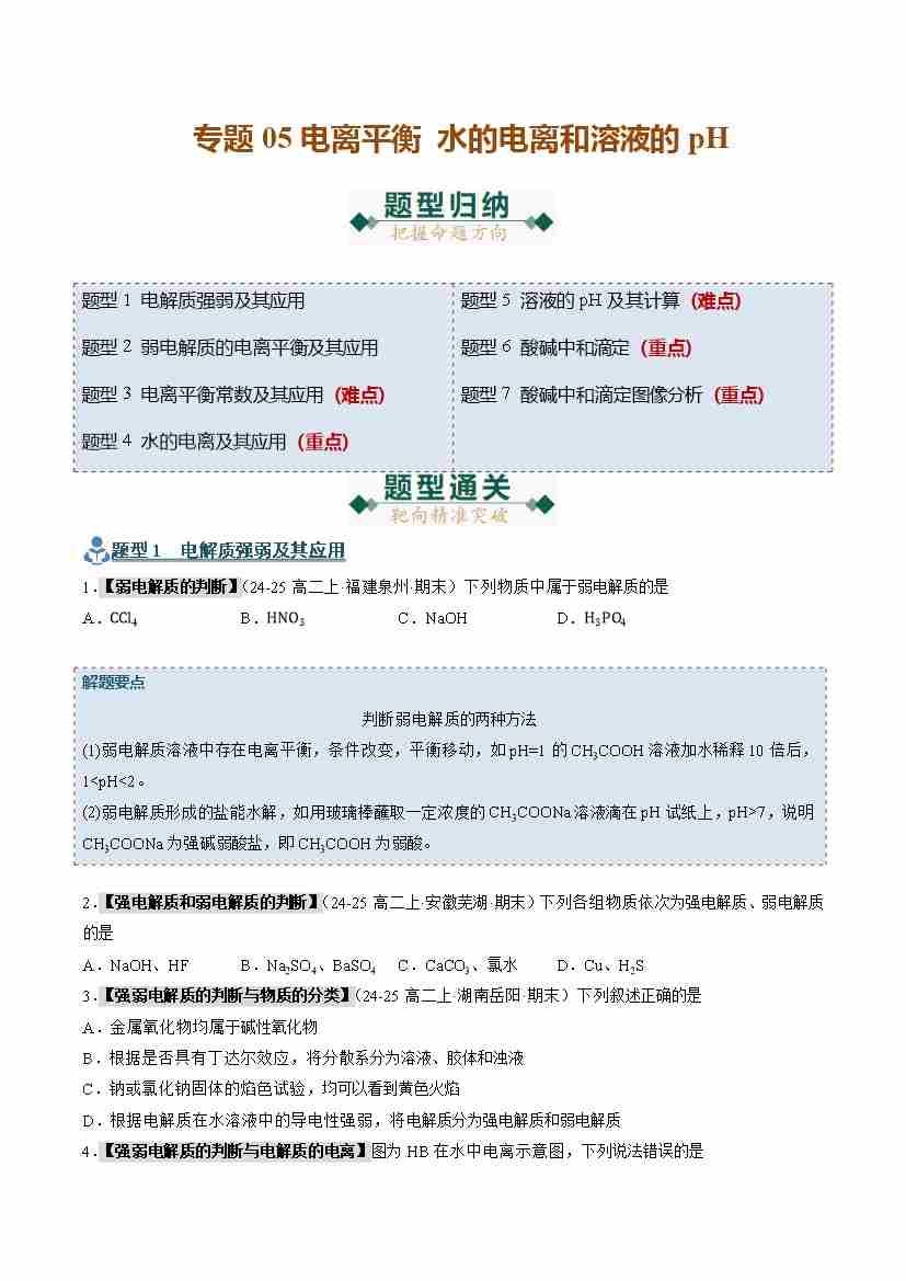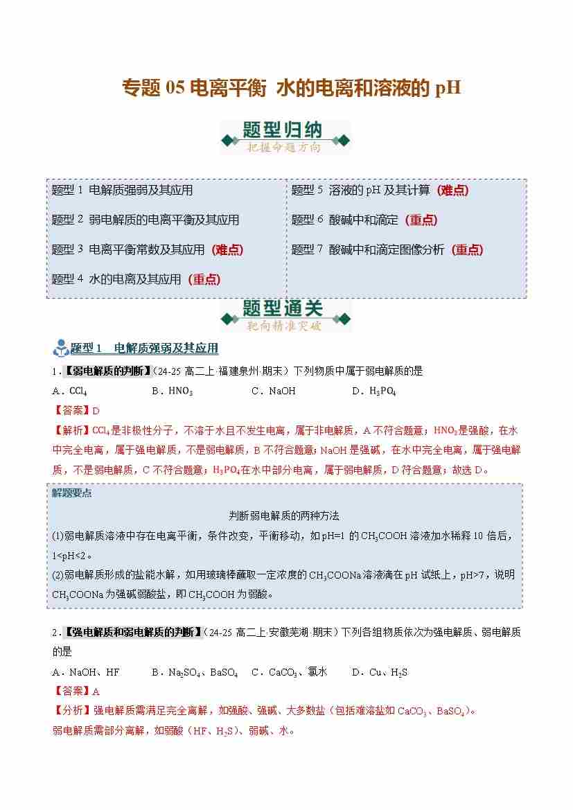专题05 电离平衡 水的电离和溶液的pH (期末复习专项训练)(学生版)