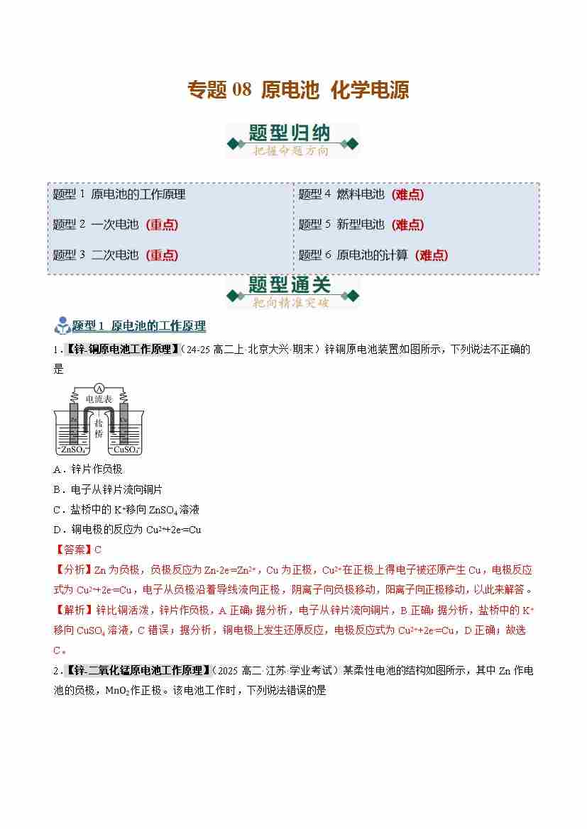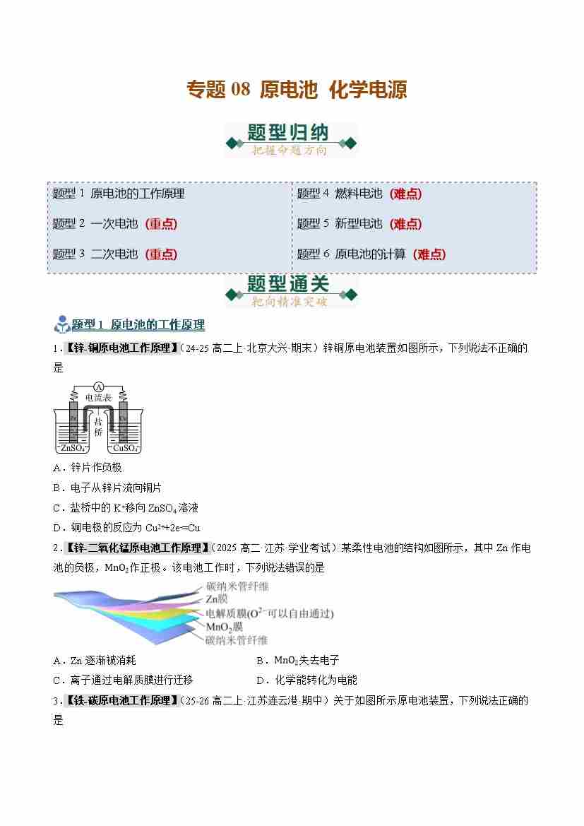 专题08 原电池 化学电源(期末复习专项训练)(学生版)