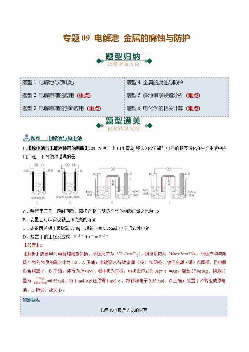 专题09 电解池 金属的腐蚀与防护(期末复习专项训练)(教师版)