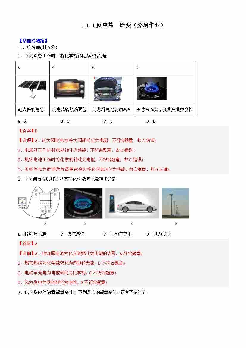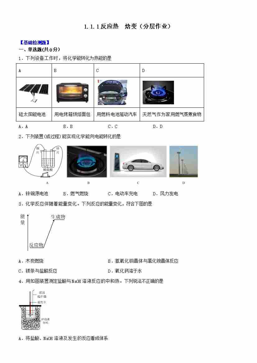 1.1.1反应热 焓变(分层作业)(原卷版)