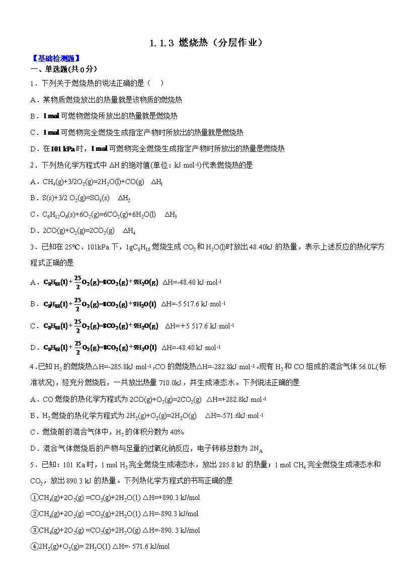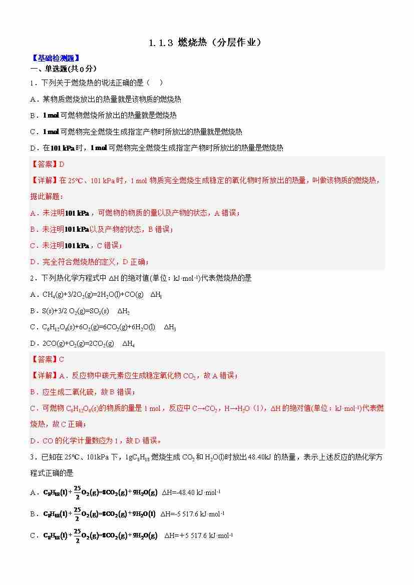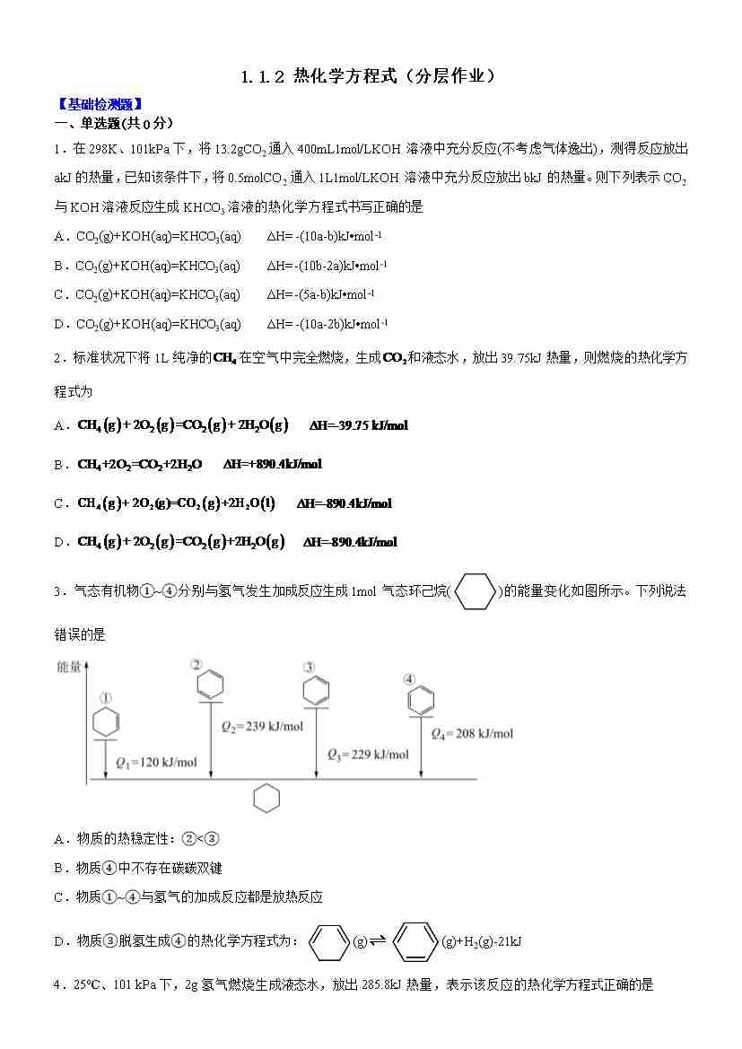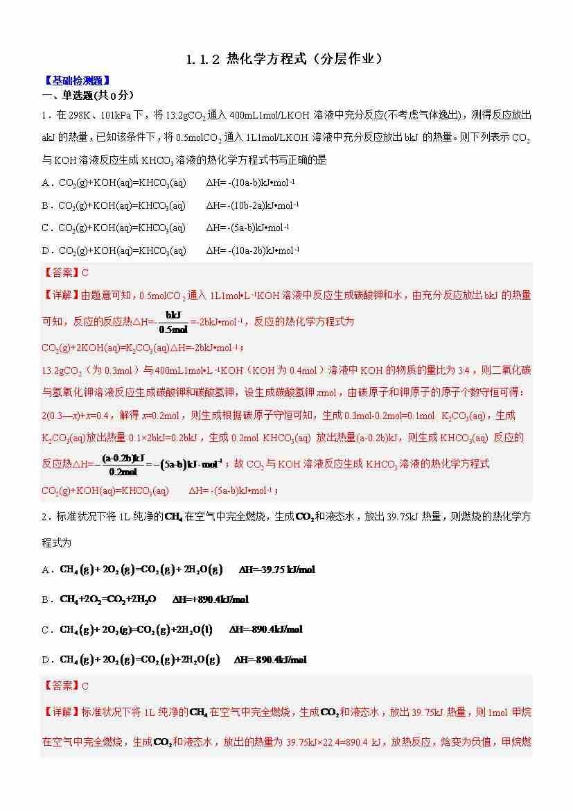 1.1.2 热化学方程式(分层作业)(原卷版)