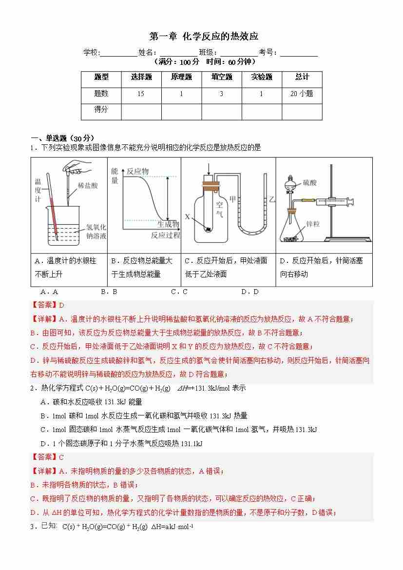 第一章 化学反应的热效应(单元检测)(解析版)(人教版2019选择性必修1)