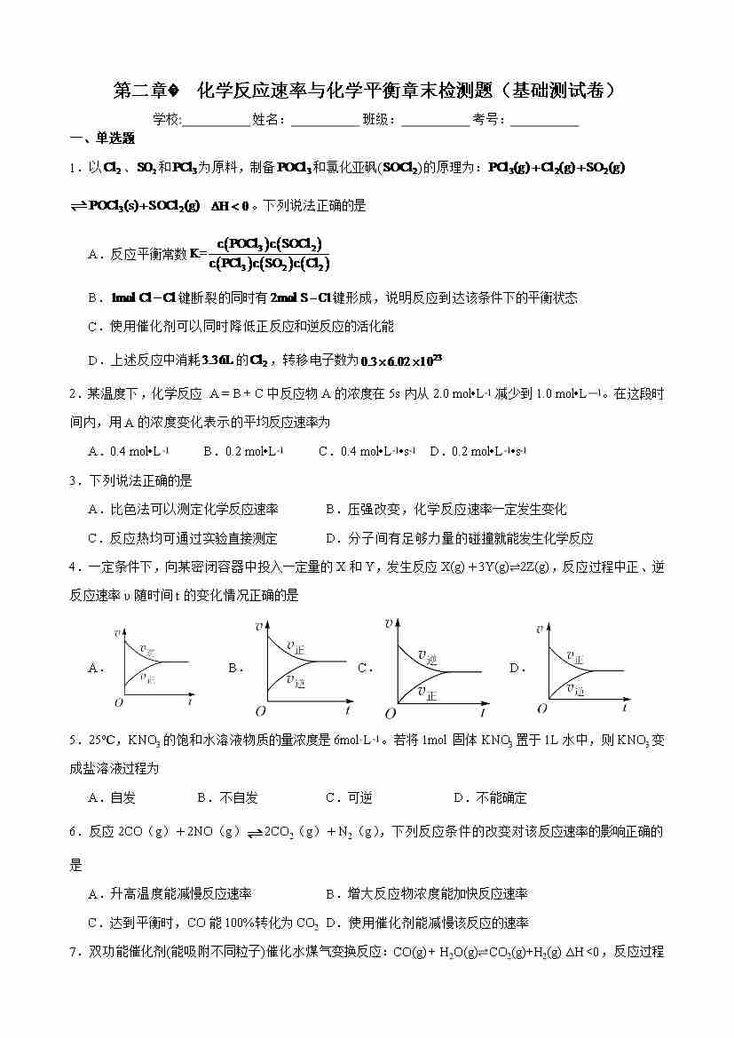 第二章化学反应速率与化学平衡章末检测题(基础测试卷)
