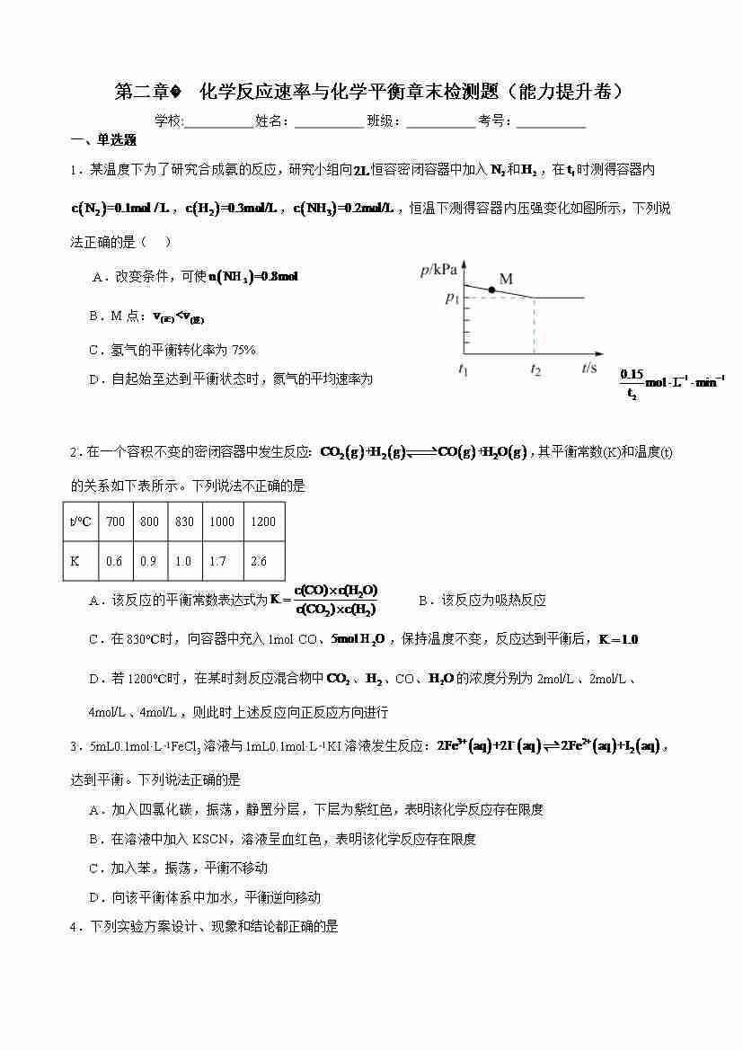 第二章化学反应速率与化学平衡章末检测题(能力提升卷)