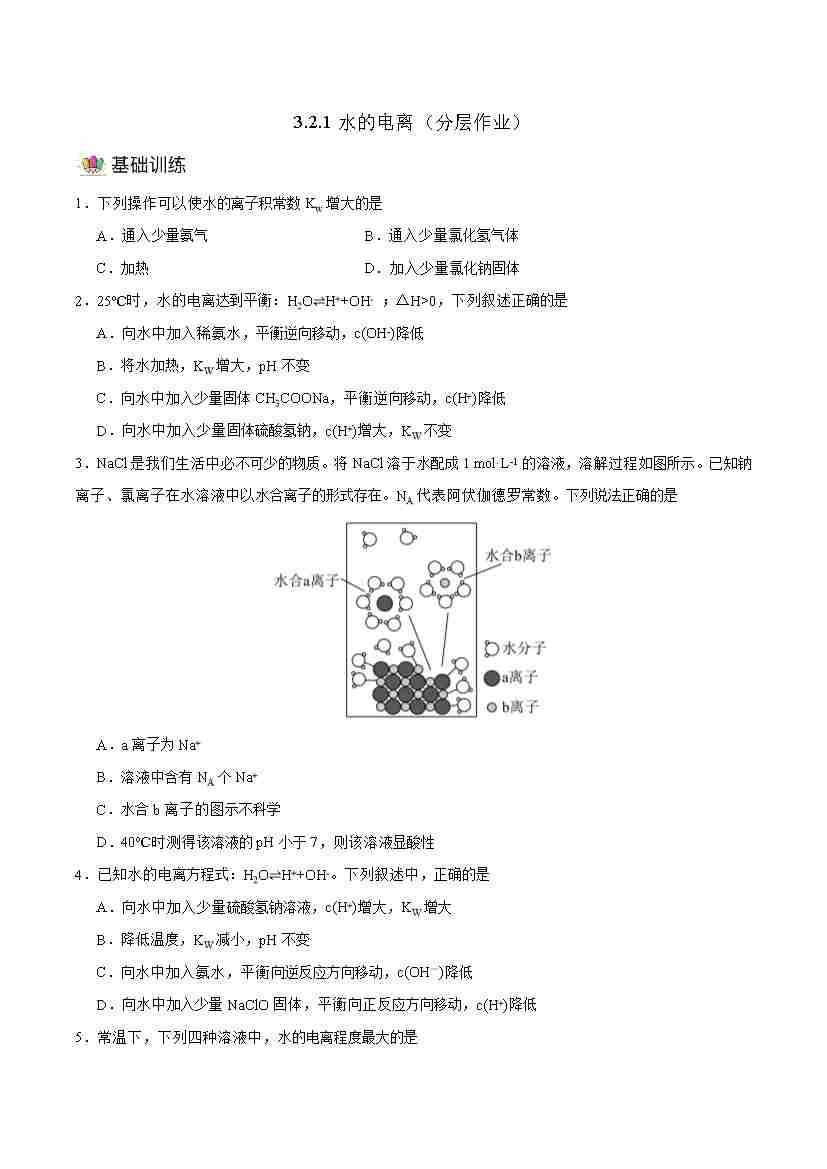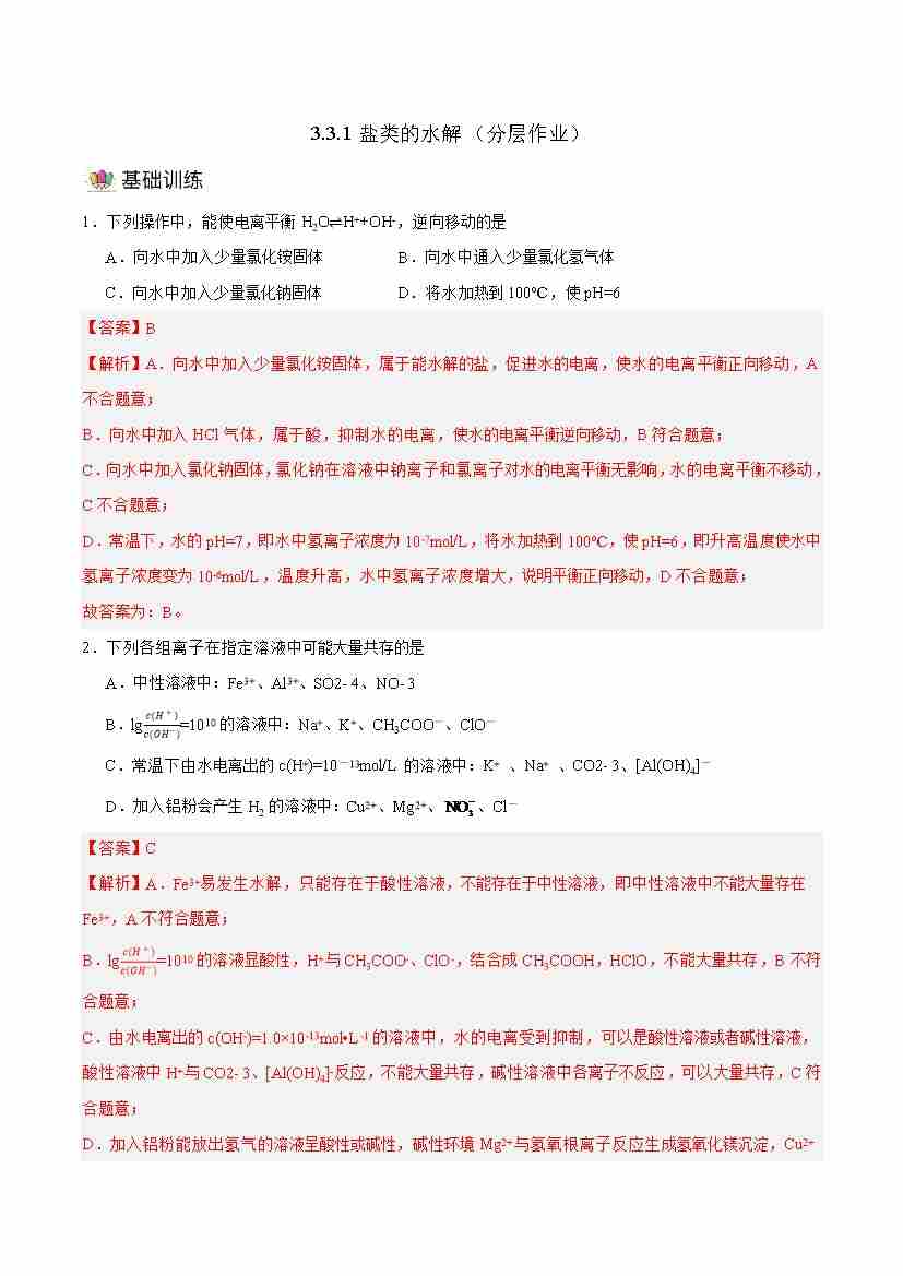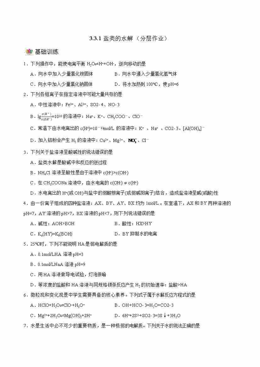 3.3.1 盐类的水解(分层作业)(原卷版)