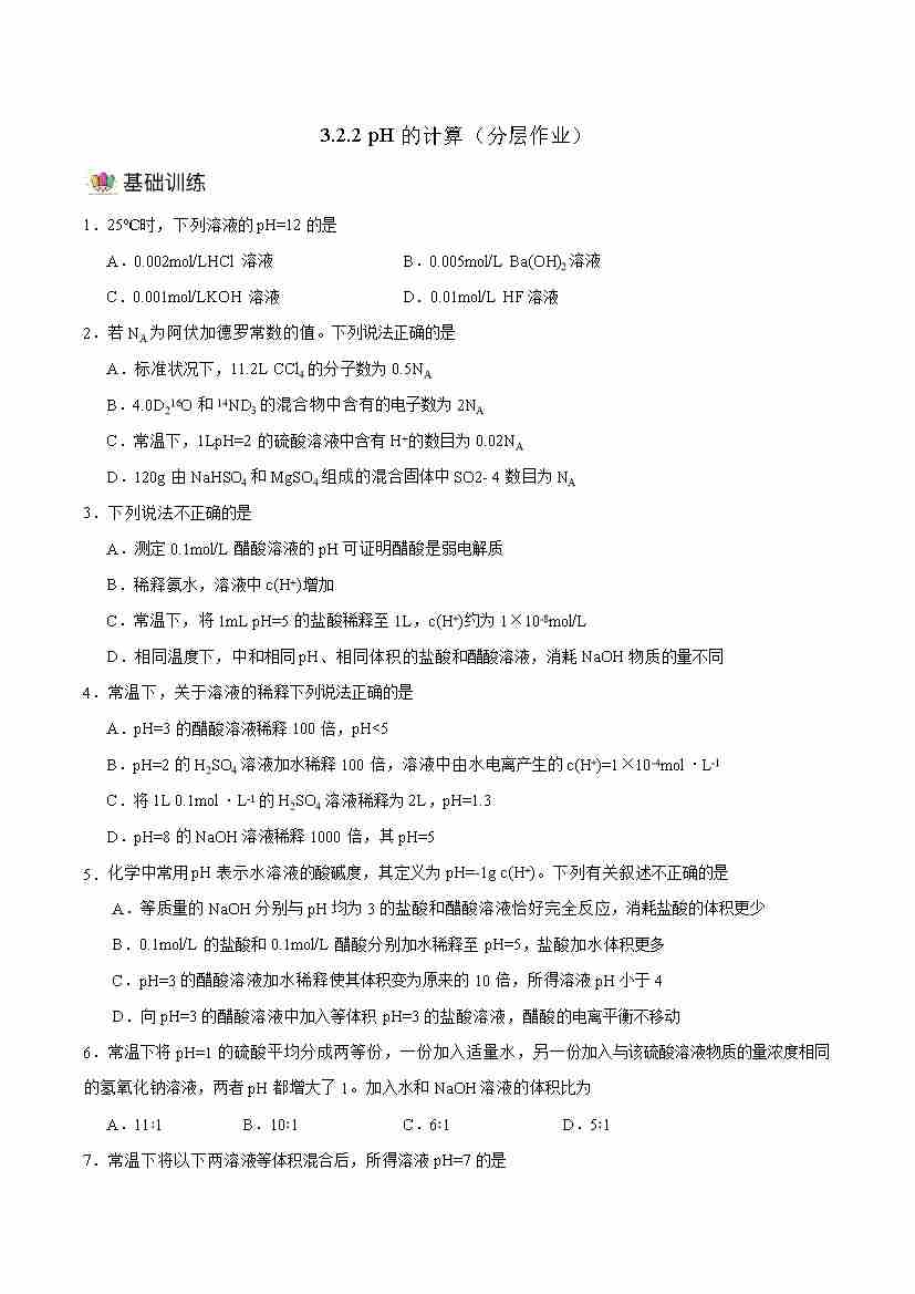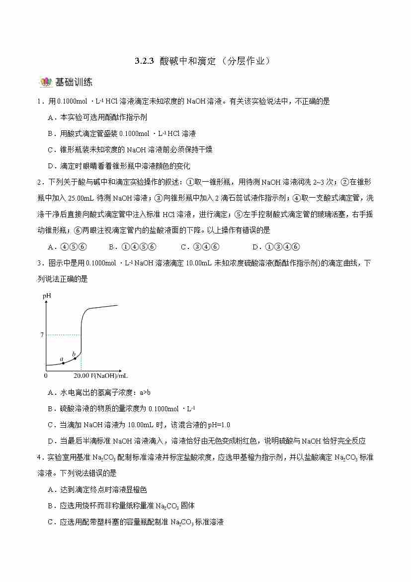 3.2.3 酸碱中和滴定(分层作业)(原卷版)