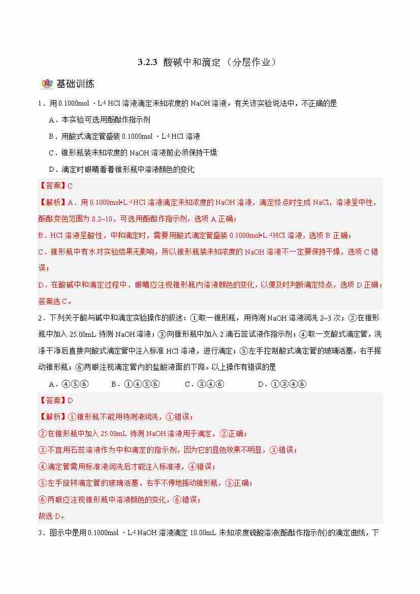 3.2.3 酸碱中和滴定(分层作业)(解析版)