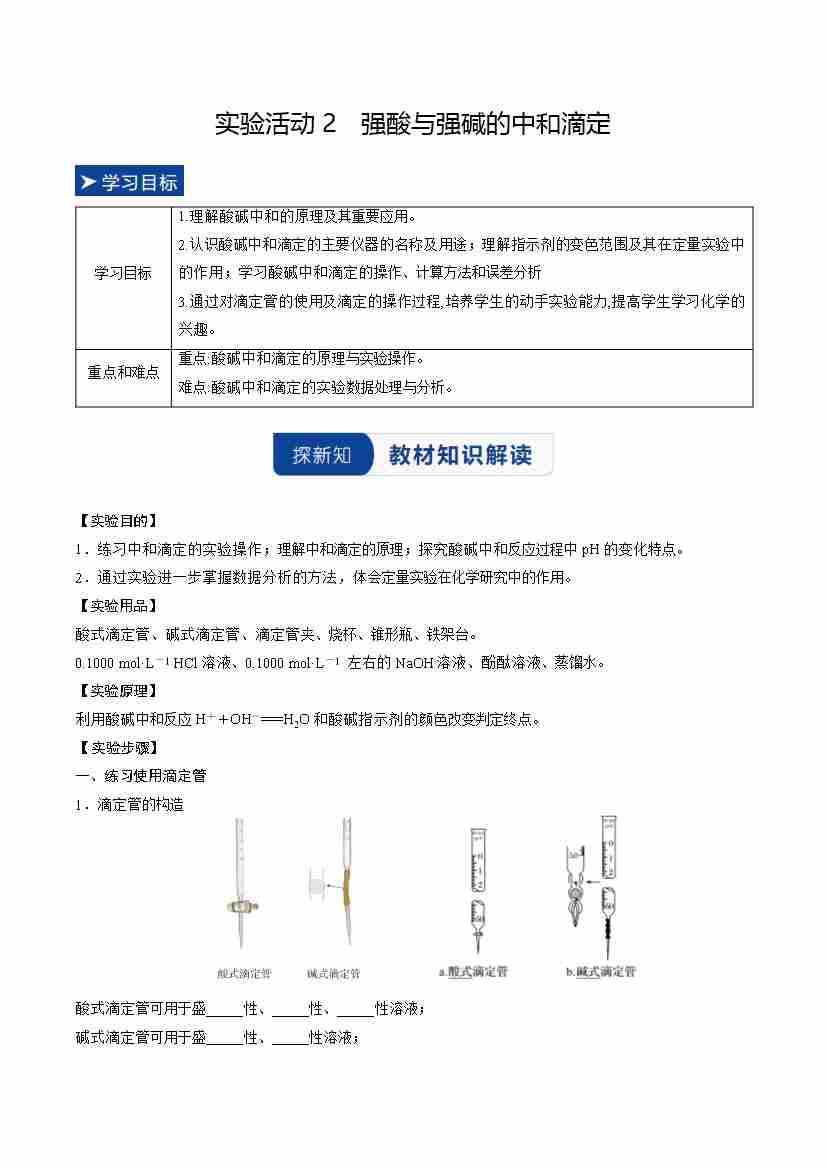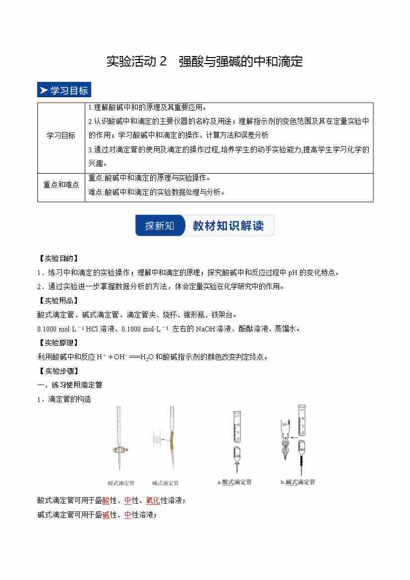 实验活动2 强酸与强碱的中和滴定(学生版)