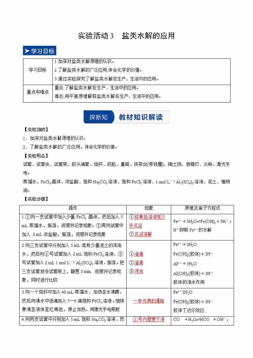 实验活动3 盐类水解的应用(教师版)