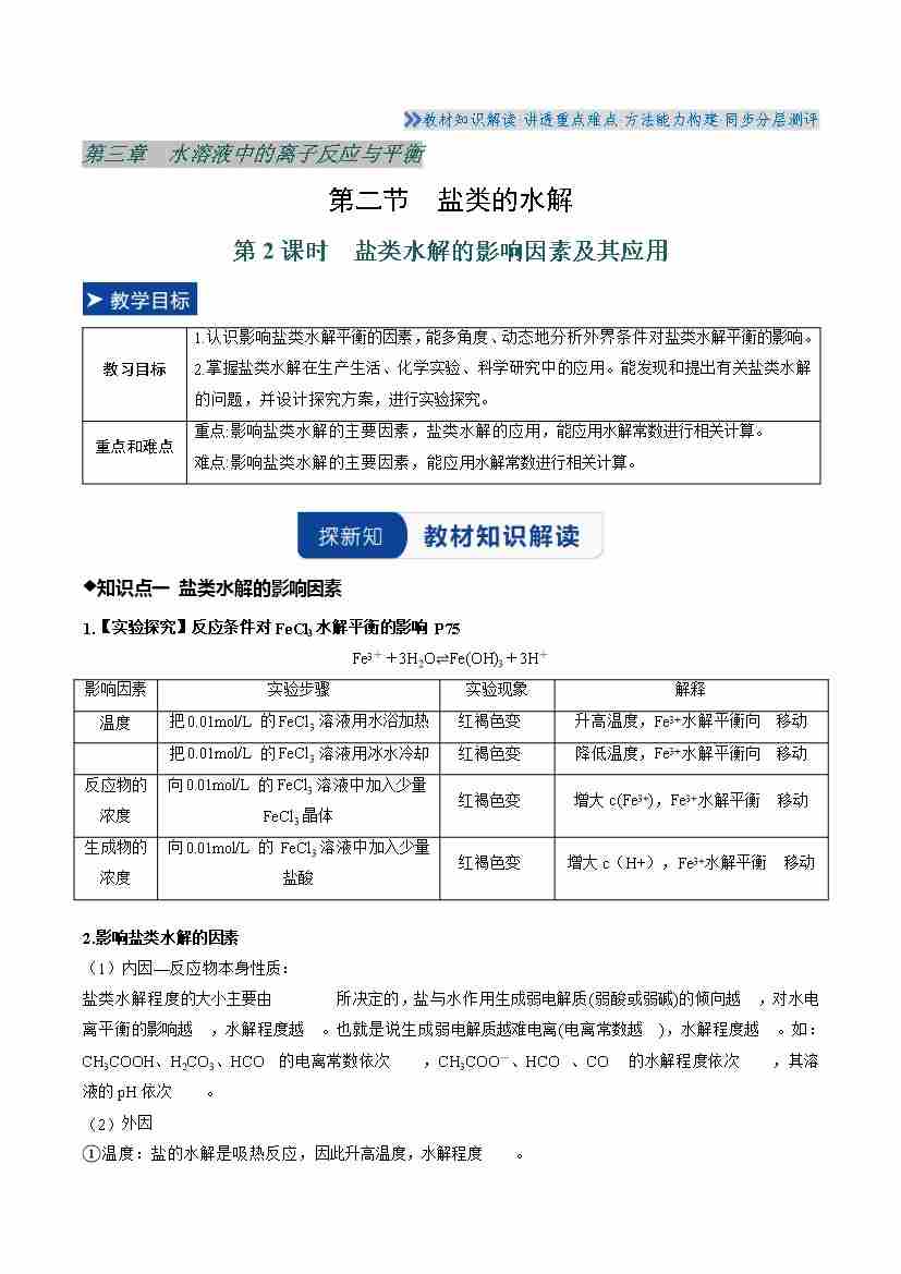 第三节 盐类的水解 第2课时(学生版)
