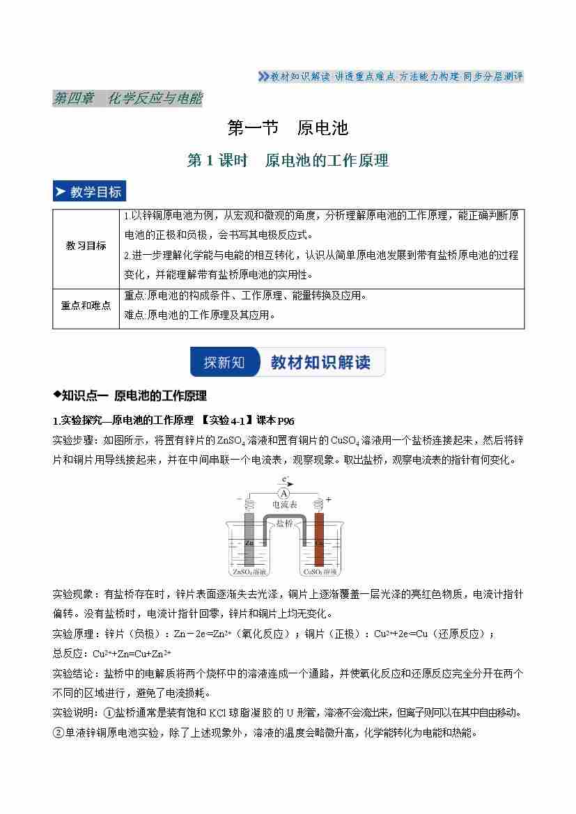 第四章 第一节 原电池 第1课时(教师版)