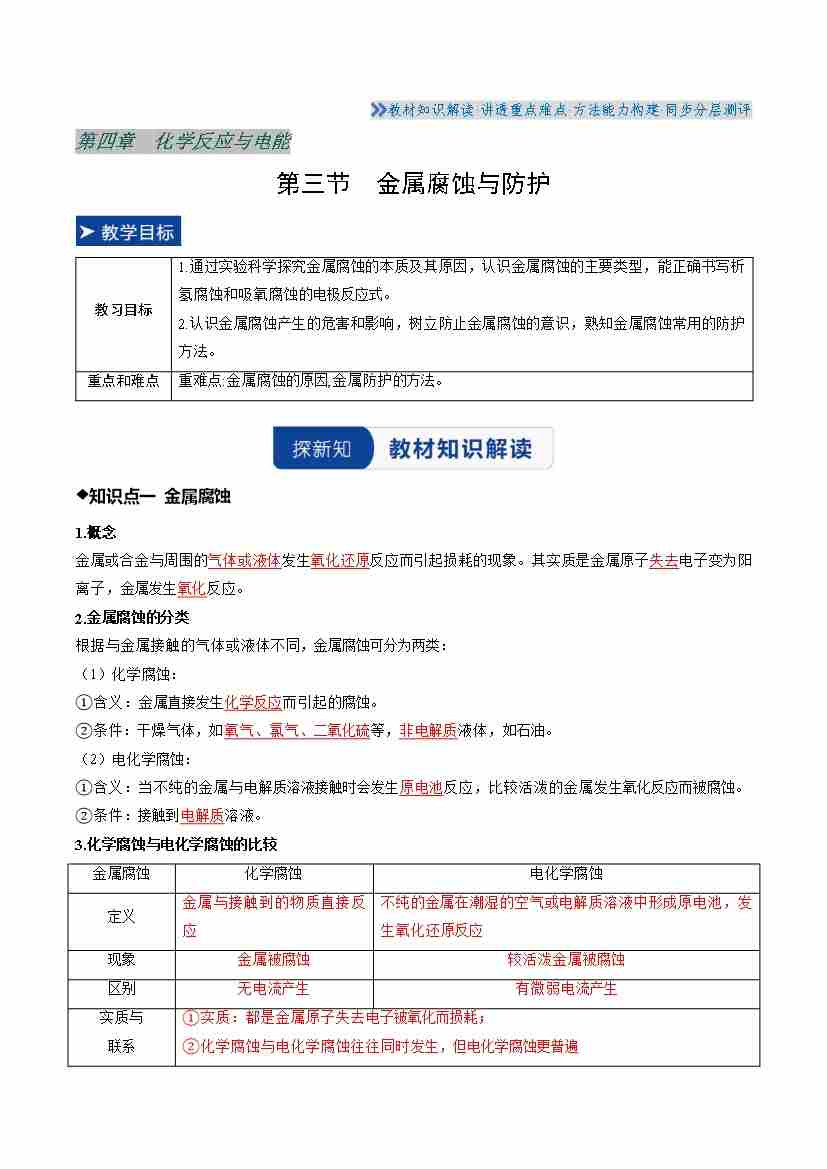 第四章 第三节 金属腐蚀与防护(学生版)