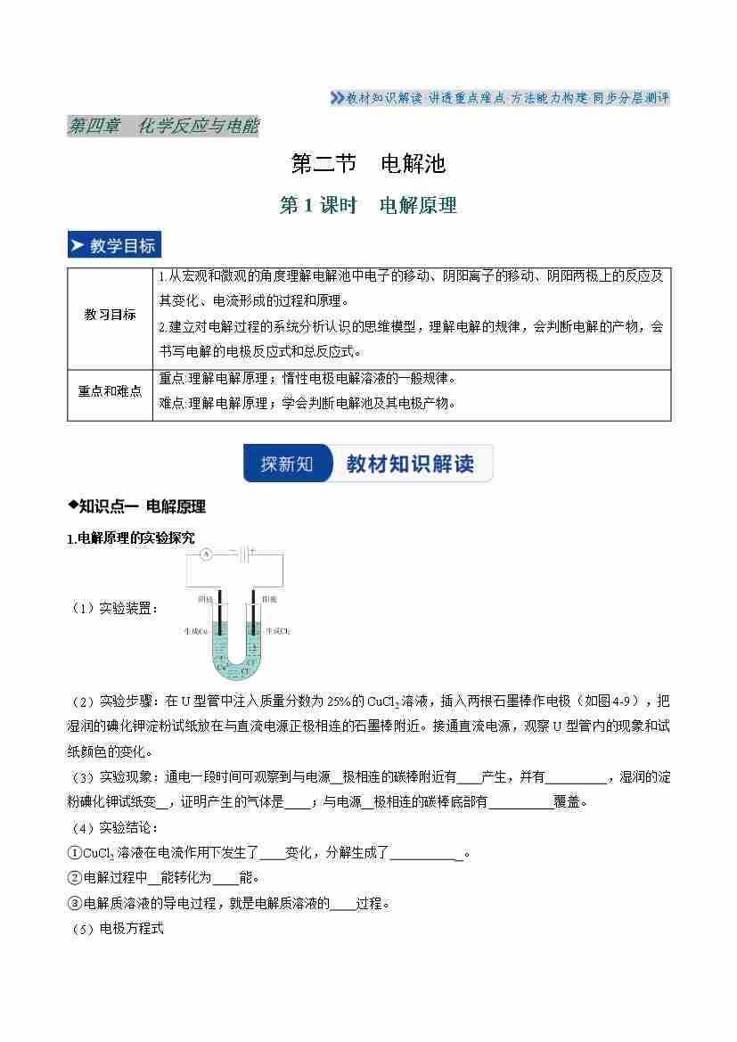 第四章 第二节 电解池 第1课时(教师版)