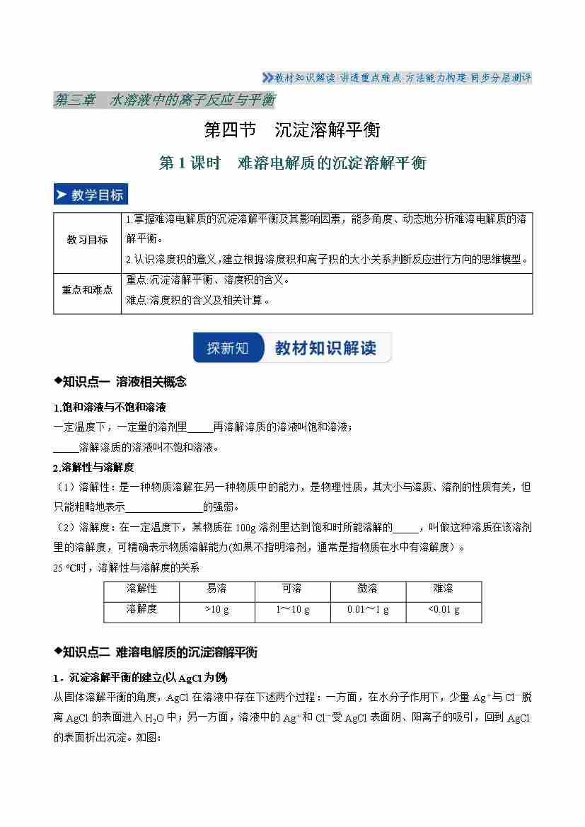 第四节 沉淀溶解平衡 第1课时(学生版)