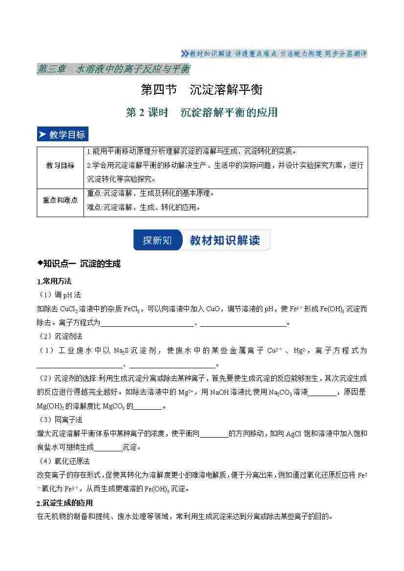 第四节 沉淀溶解平衡 第2课时(学生版)