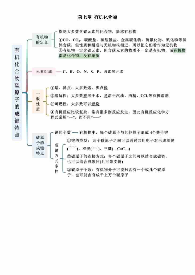 第七章 有机化合物-高中化学人教版必修第二册思维导图