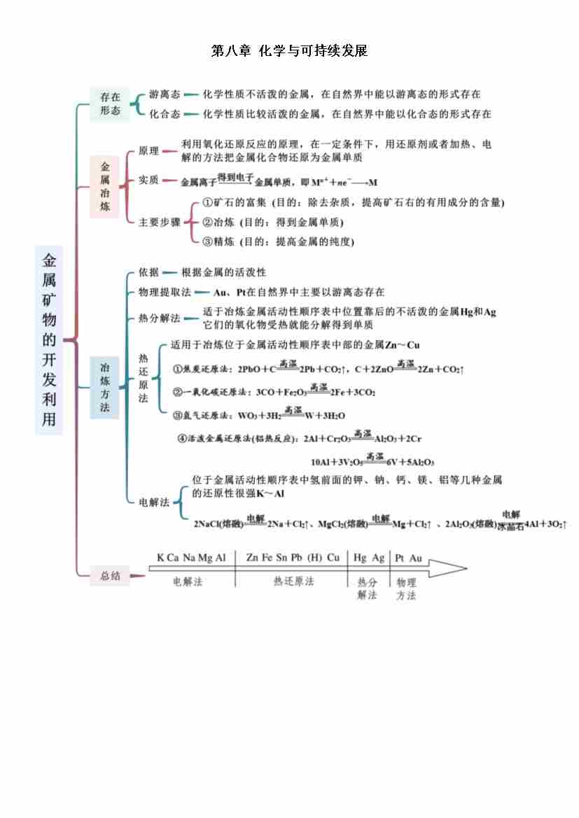 第八章 化学与可持续发展-高中化学人教版必修第二册思维导图